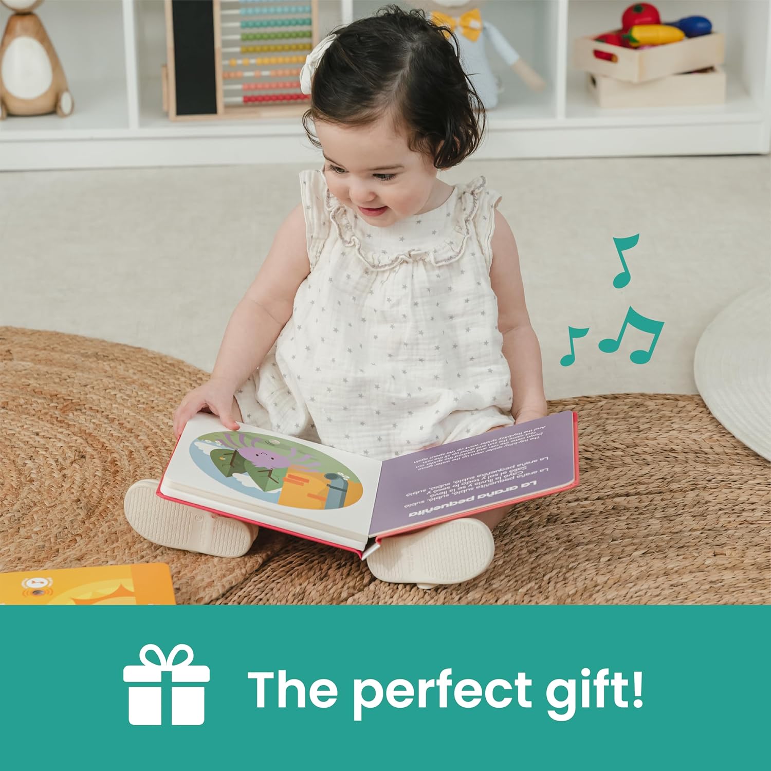 - ๐ฃ๐ฒ๐ฟ๐ณ๐ฒ๐ฐ๐ ๐๐ผ๐ฟ ๐๐ถ๐ณ๐๐ถ๐ป๐ด. These Spanish baby books for children 0-6 months and toddlers 1-3 make perfect gifts for supporting children everywhere in becoming bilingual and learning Spanish. These are also ideal spanish baby toys. Estos libros en espaรฑol para bebรฉ son ideales regalos y perfectos libros en espaรฑol para niรฑos tambiรฉn. Con canciones infantiles en cada pรกgina, tu bebรฉ estarรก cantando y bailando mientras practica el espaรฑol con estos libros musicales.