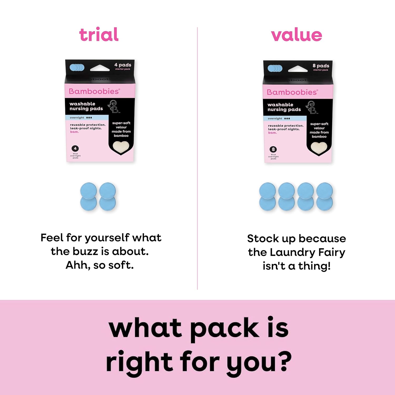 Bamboobies Overnight Nursing Pads, Ultra-Soft Velour, Reusable and Washable for Nightly Use, Leak-Proof Pads for Breastfeeding, 8 Pads