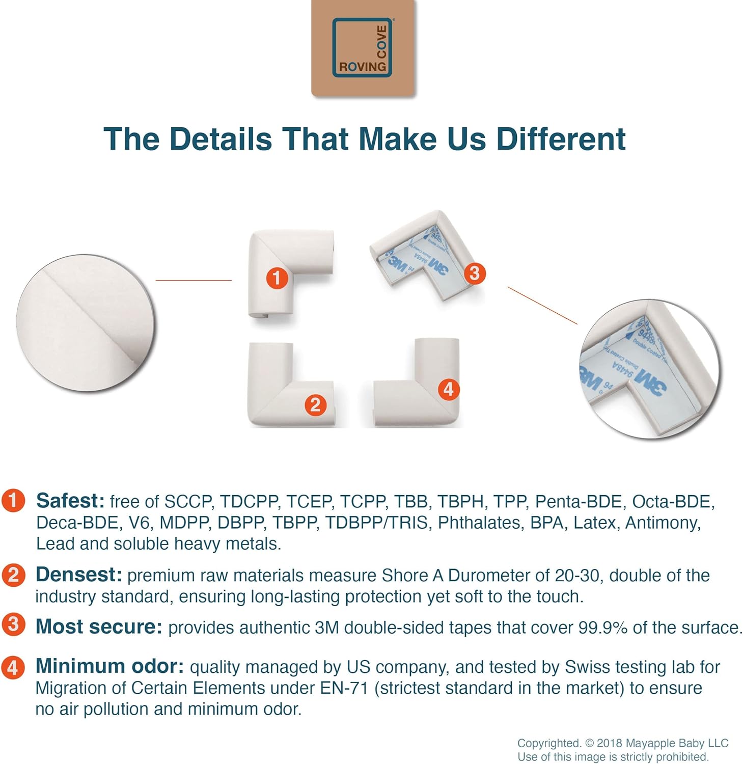 - CLEAN SAFETY: Roving Cove uses safe and pure raw material and was the first brand to make foam safety bumpers without the use of toxic flame-retardant chemicals (SCCPs). Our corner protector contains no BPA, no phthalates, no heavy metals, no latex, no SCCPs. Inherently flame-resistant; passed flammability tests under US regulations.
