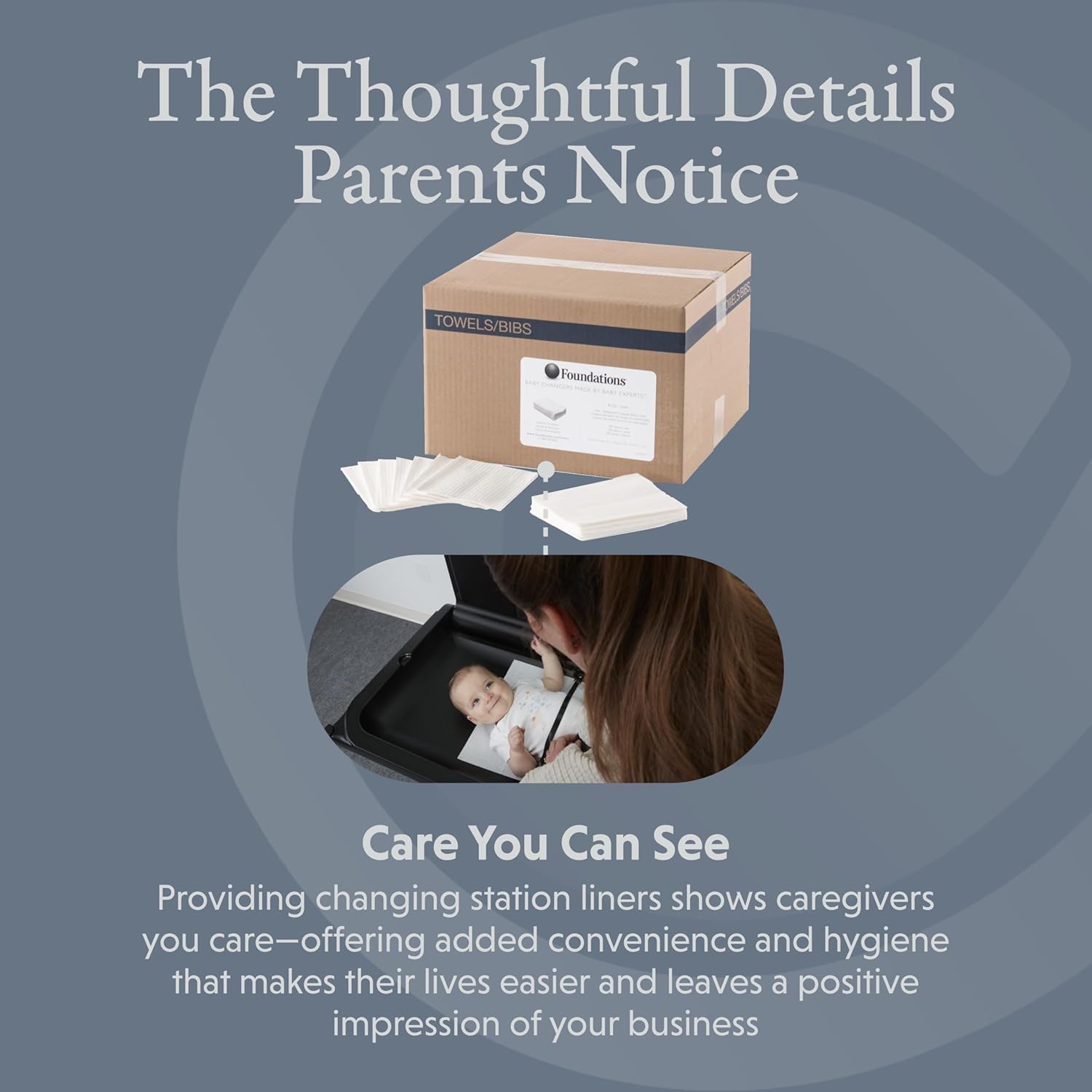 Foundations 2-Ply Disposable Non-Waterproof Baby Changing Station Liner Refills for Commercial Restrooms, Doctor's Offices, Care Centers, 500 Pack, 036-NWL