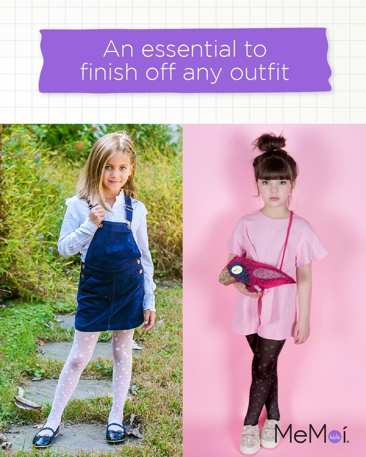 MeMoi Sweet Blossoms Sheer Tights for Girls, Ultra Soft and Lightweight Floral Lace Girls Tights - Sizes 2-14