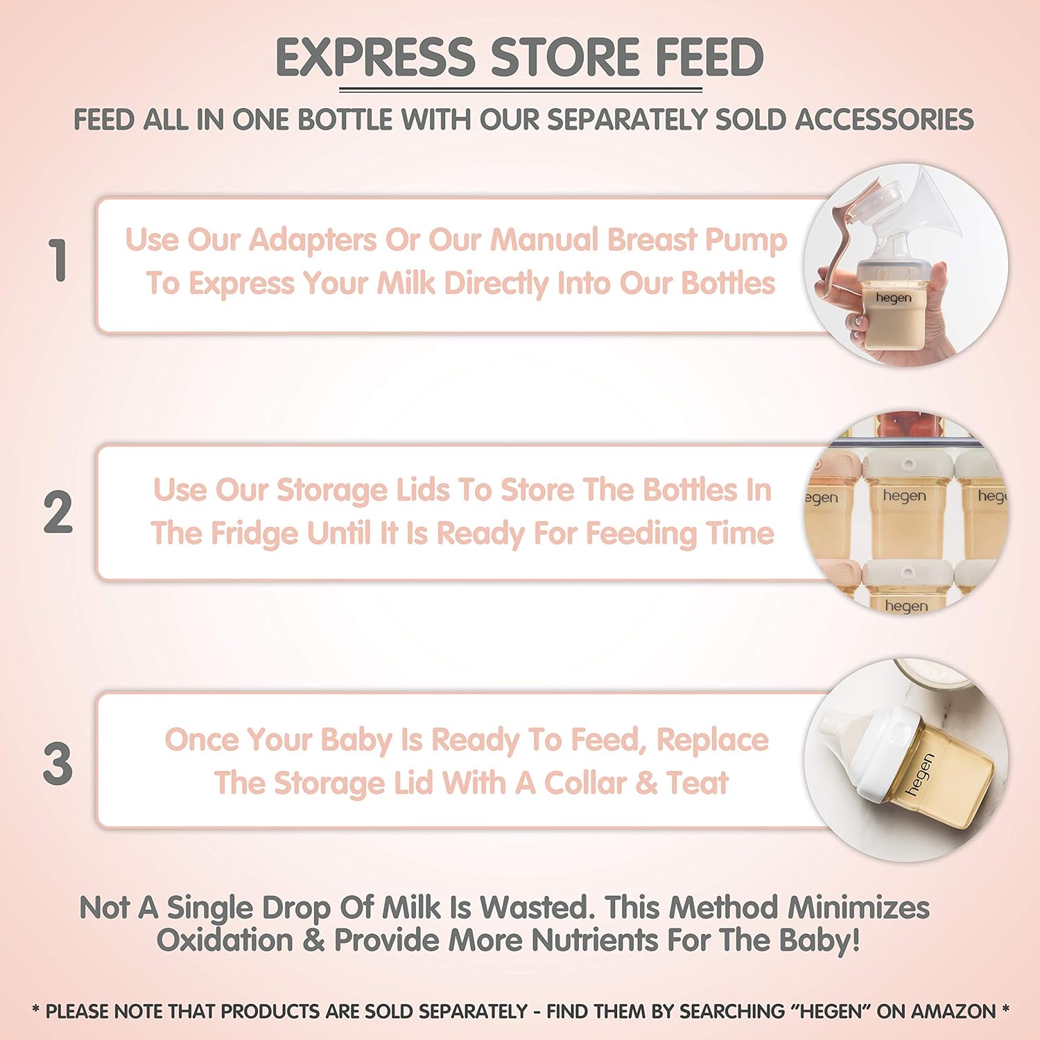 hegen Baby Bottles - Anti Colic Baby Bottles Wide Neck - Breastfeeding System 5 oz with Slow Flow Teats (2 Pack)