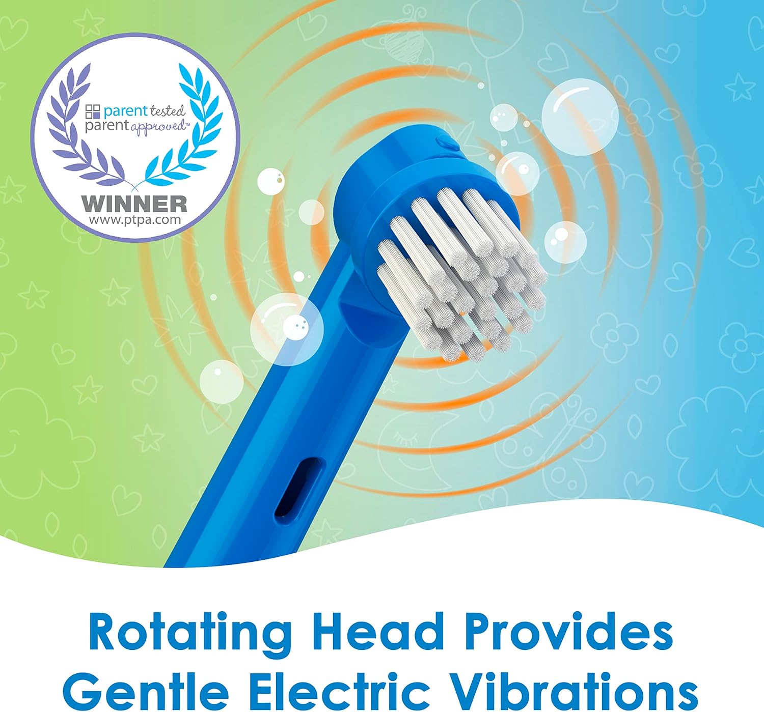 - What You Get: Battery-powered children’s toothbrush, animal-themed brush cover, replacement brush head, rinse cup, 2-minute sand timer, stand, user manual, printed brushing chart, and industry-leading 5 Year Manufacturer's Warranty.