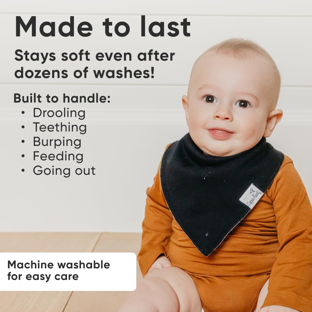 Copper Pearl 4 Pack Soft Cotton Baby Bibs for Drooling and Teething, Absorbent Drool Bibs for Baby Girl and Boy, Adjustable to Fit Newborns to Toddlers (Black Basics)