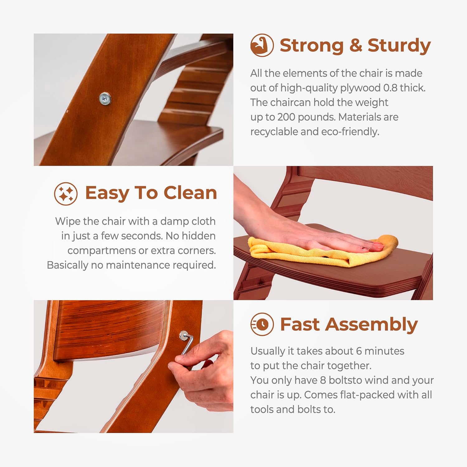 FORNEL Adjustable Wooden High Chair for Babies, Toddlers & Kids | The Grow-with-Me Chair from 6 Months to 200 lbs | Modern, Easy to Clean Dining Chair (Walnut)