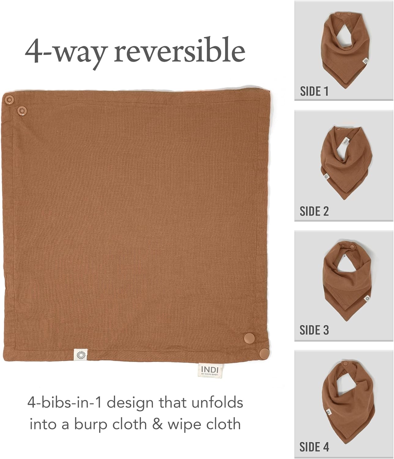 - VERSATILE ORGANIC MUSLIN BABY BIBS FOR TODDLER BOYS - Make the most of your toddler boy's daily routine with our innovative 4-way reversible organic muslin baby bibs. These adaptable muslin bandana bibs unfold into a perfect square, serving as both stylish baby bandana bibs and handy wipe cloths for those messy hands and faces. For moms on the move, they even double as muslin burp bibs!