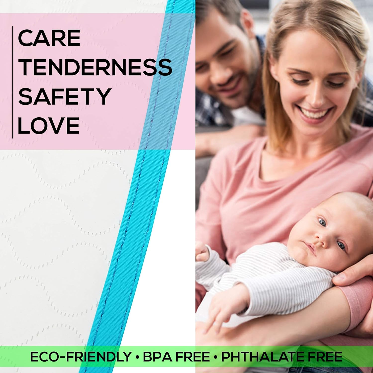 Baby Diaper Changing Mat - 31,5 x 25,5 inch Waterproof Portable Travel Changing Pad - Wipable Liners for Newborn Todlers Kids - Foldable Large Baby Nappy Changer Mat (White w/Turquoise Changing mat)