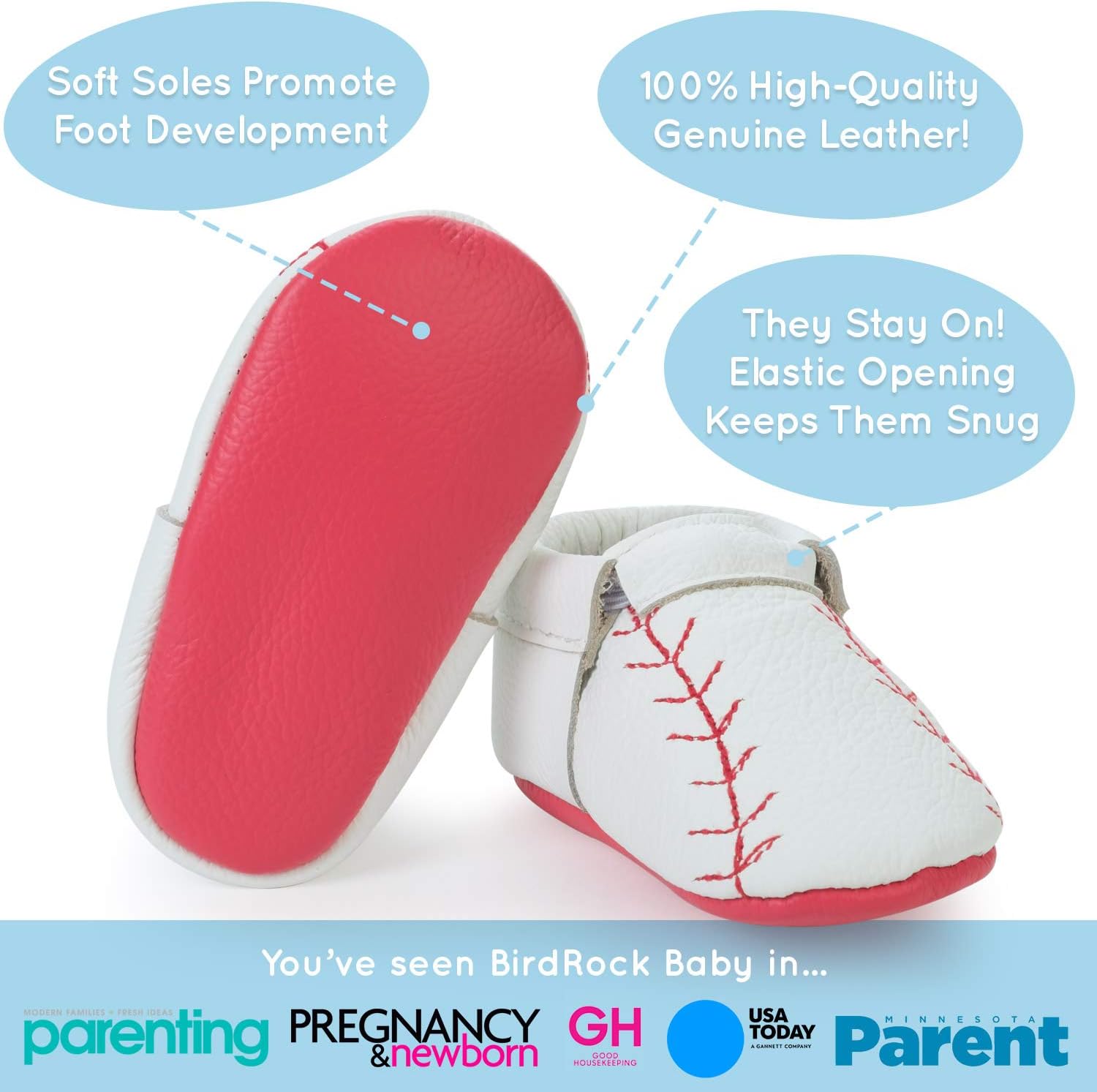 BirdRock Baby Fringeless Moccasins - Genuine Leather Boys and Girls Shoes for Newborns, Infants, Babies, Toddlers