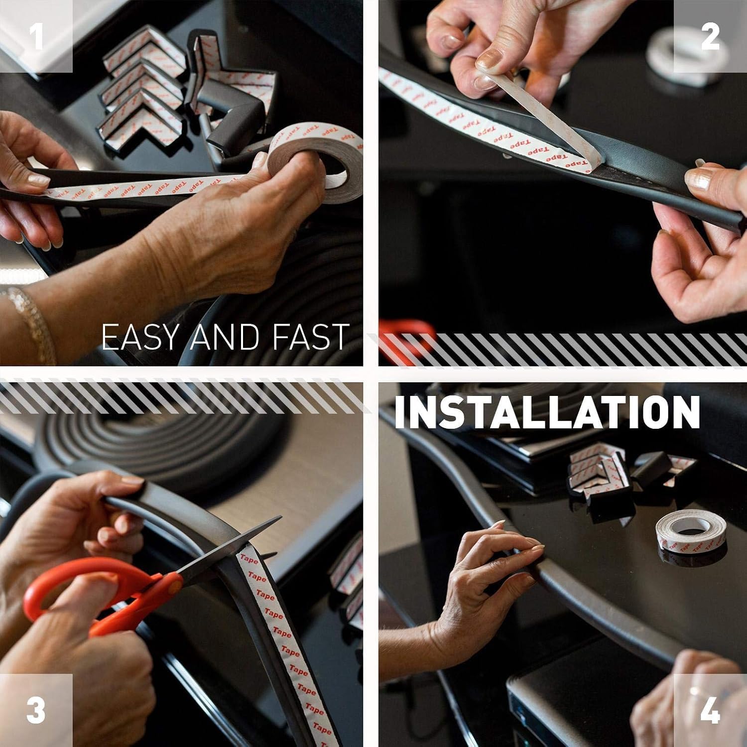 - β INSTALL EASILY, FITS ANY FURNITURE: Turn your home into a safe playground in seconds with baby safety rubber corner guards and table edge protector. Simply cut edge protector for baby to fit your furniture. Suitable for use on kitchen countertops