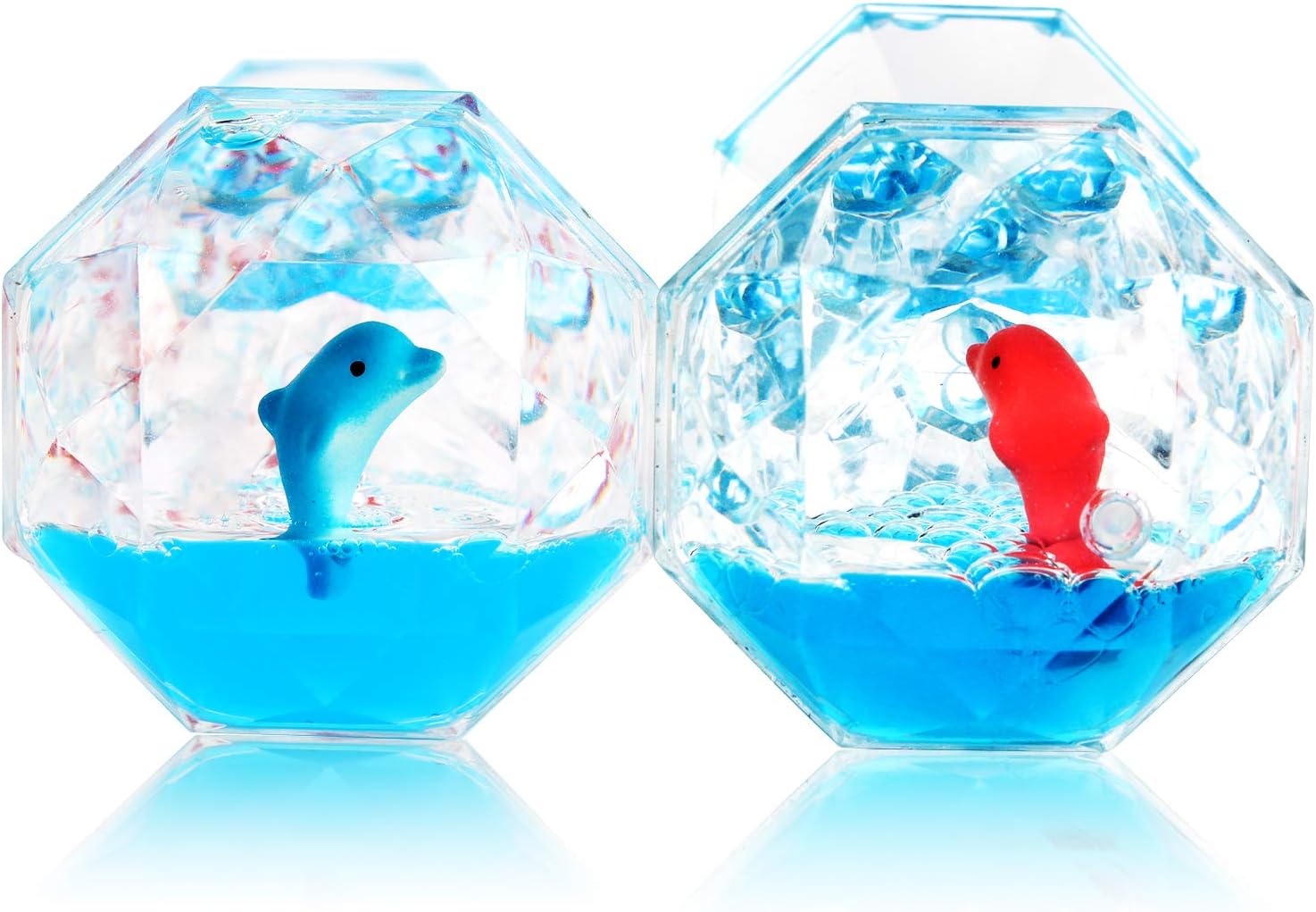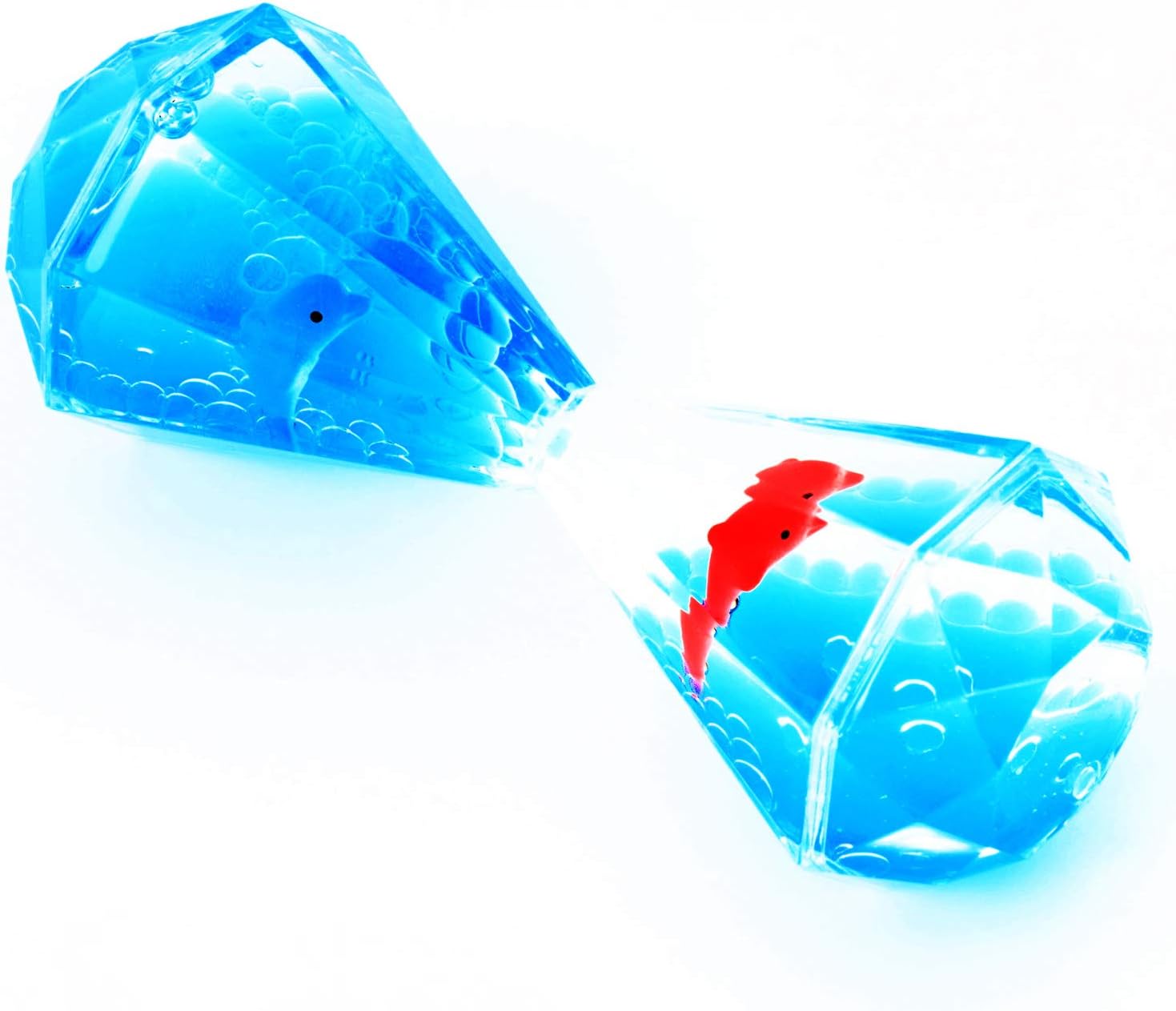 - Luxury design: diamond shaped liquid timer, blue ocean, cute animal. This liquid motion bubbler is the perfect way to stimulate your visual senses. Inside of each bubbler is a mini swimming aquatic creature, you can choose between penguin and dolphin. Collect them all!