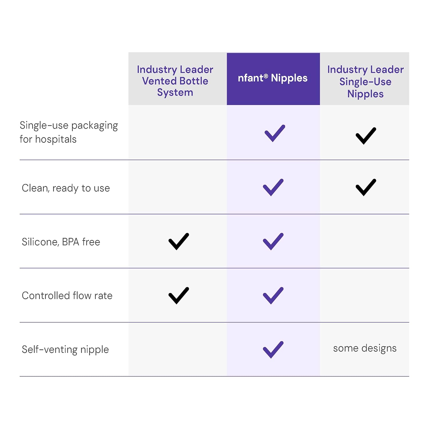 - FIND YOUR FLOW - Flow is unique to every baby. Each Nfant nipple is self-venting to allow the nipple to stay full of milk or formula while baby is feeding.