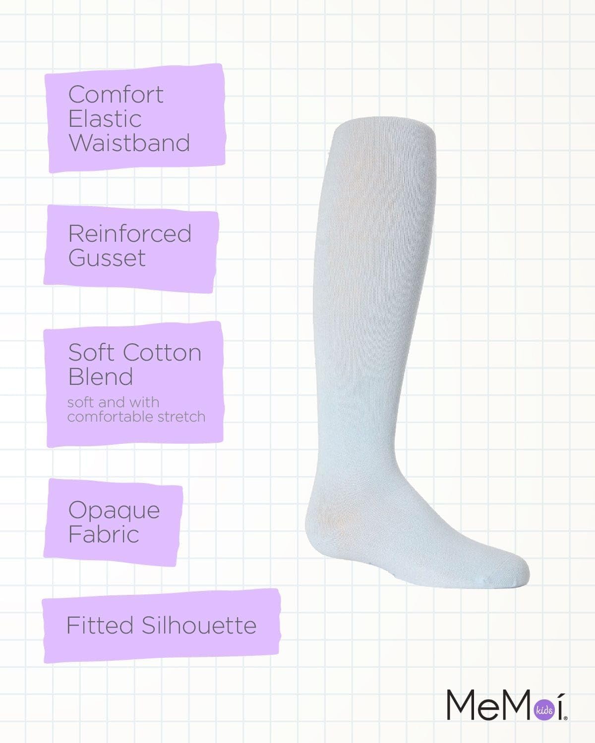 MeMoi Soft Pima Cotton Tights for Girls, Soft and Lightweight Opaque Tights for girls - Sizes 8 to 16