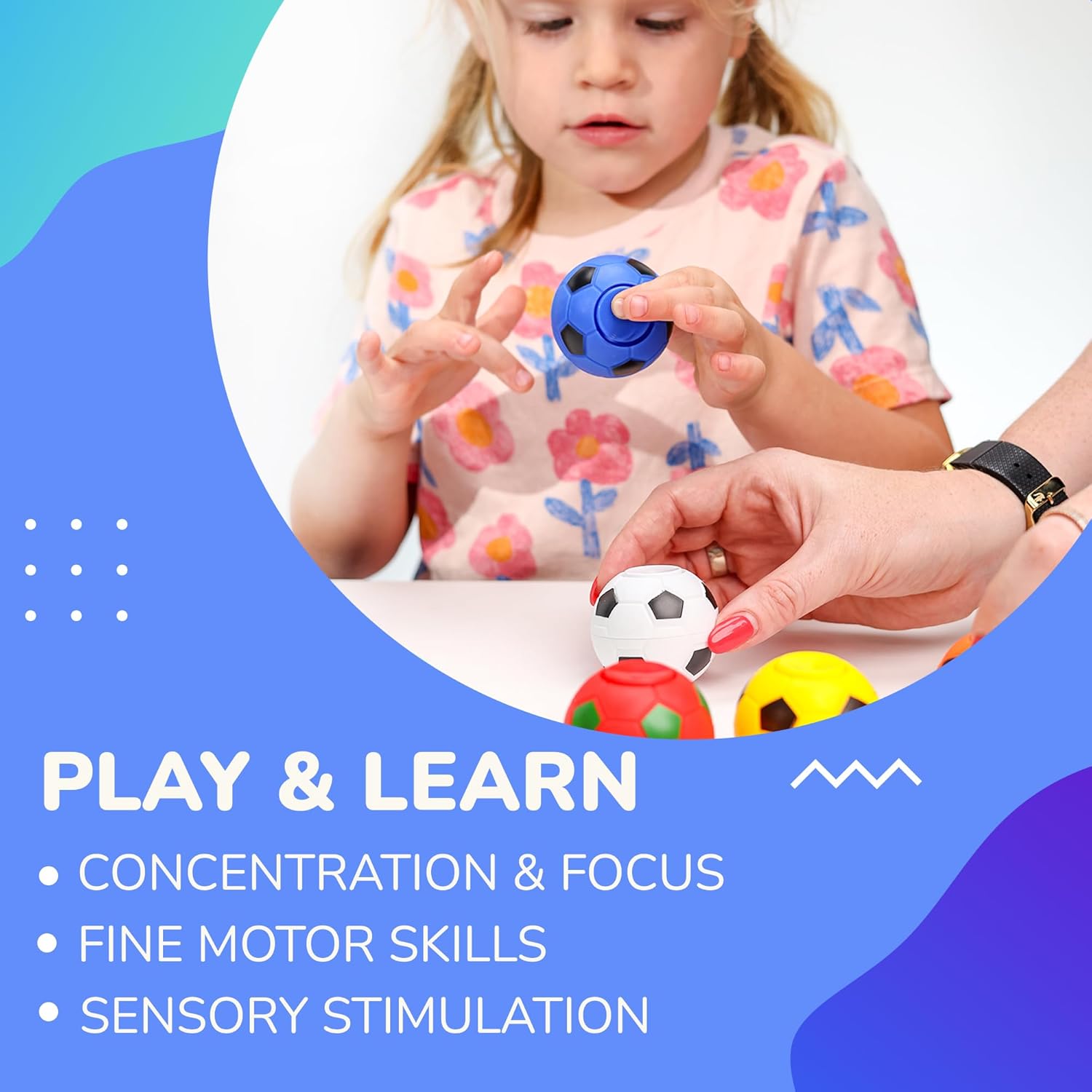 - Soccer ball fidget spinners have a blue color. Stress ball fidget pack resemble a soccer ball