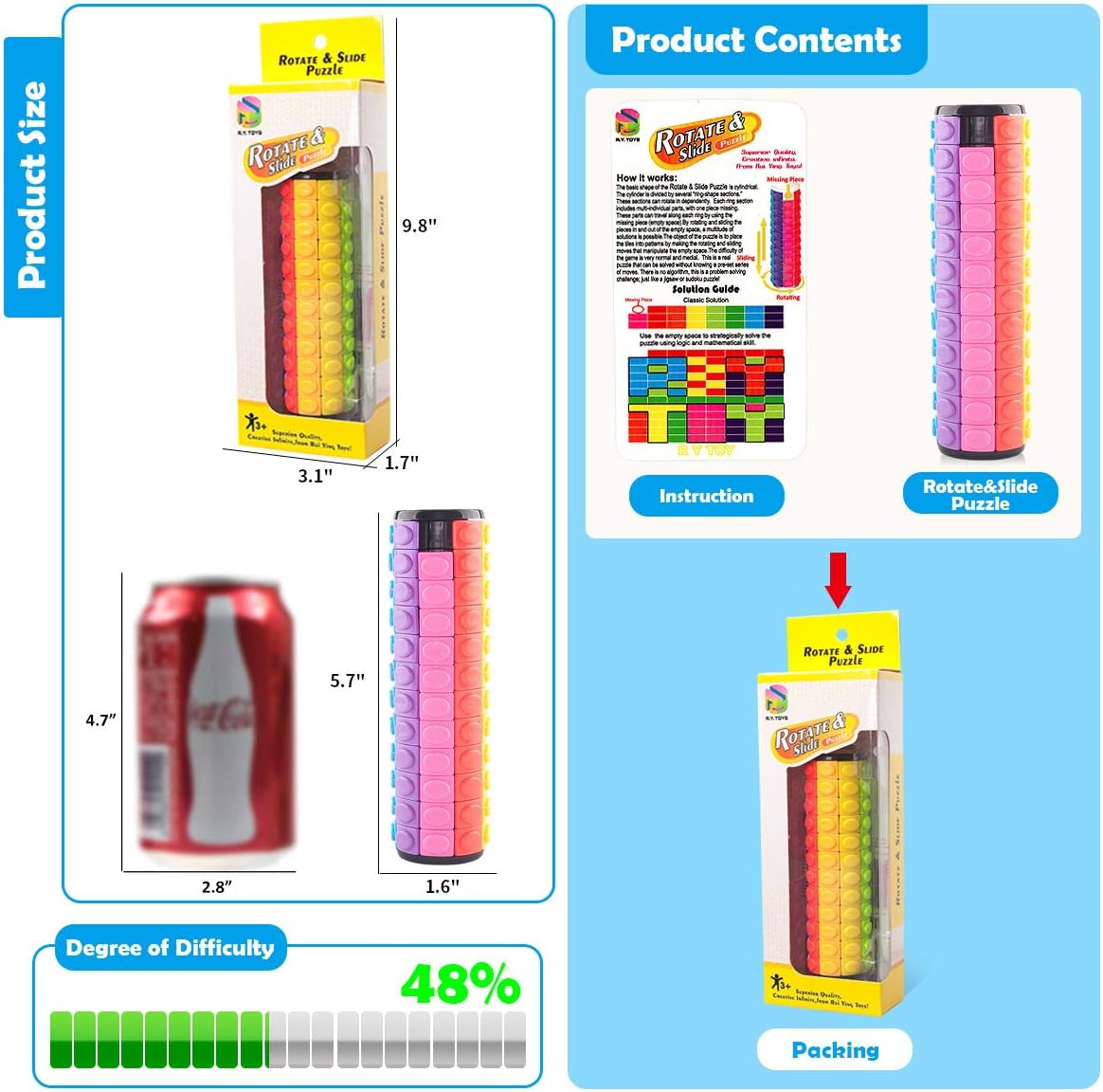 - 【Non-toxic,high-quality,safety】Nothing compares to the quality,color and unique design of the R.Y.TOYS cylinder puzzle gifts-All products have a variety of international toy quality and safety certifications
