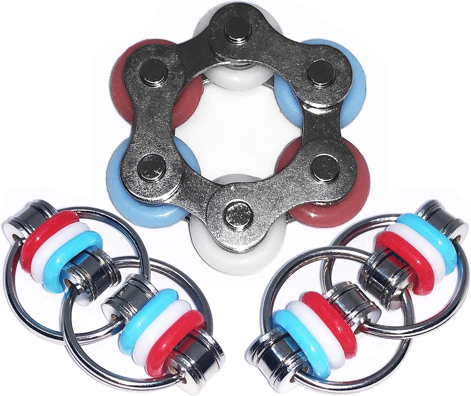 Fidget Toys Roller Chain - Stress Relief Perfect for ADHD, ADD, Anxiety in Classroom, Office, School, Work for Students, Teens, Adults Stocking Stuffers Gifts (R,W,B Style 2)