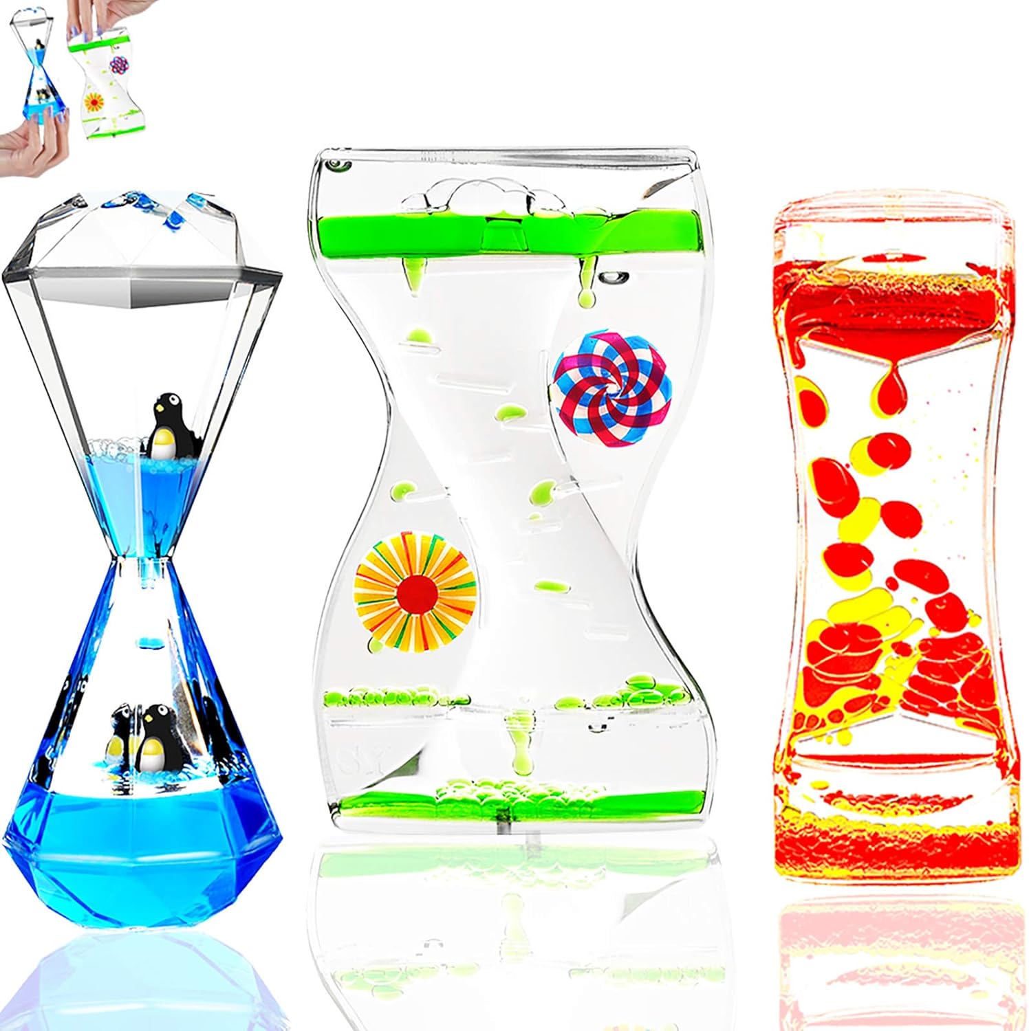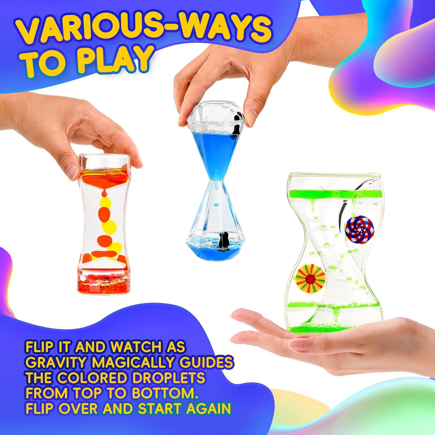 - 【GREAT BEST 3 TYPES LIQUID MOTION TOYS】 Its slow and rhythmic drops have a very soothing effect and actually help kids and adults with sensory issues. This liquid motion timer toy can also help fight anxiety, stress, and boredom.