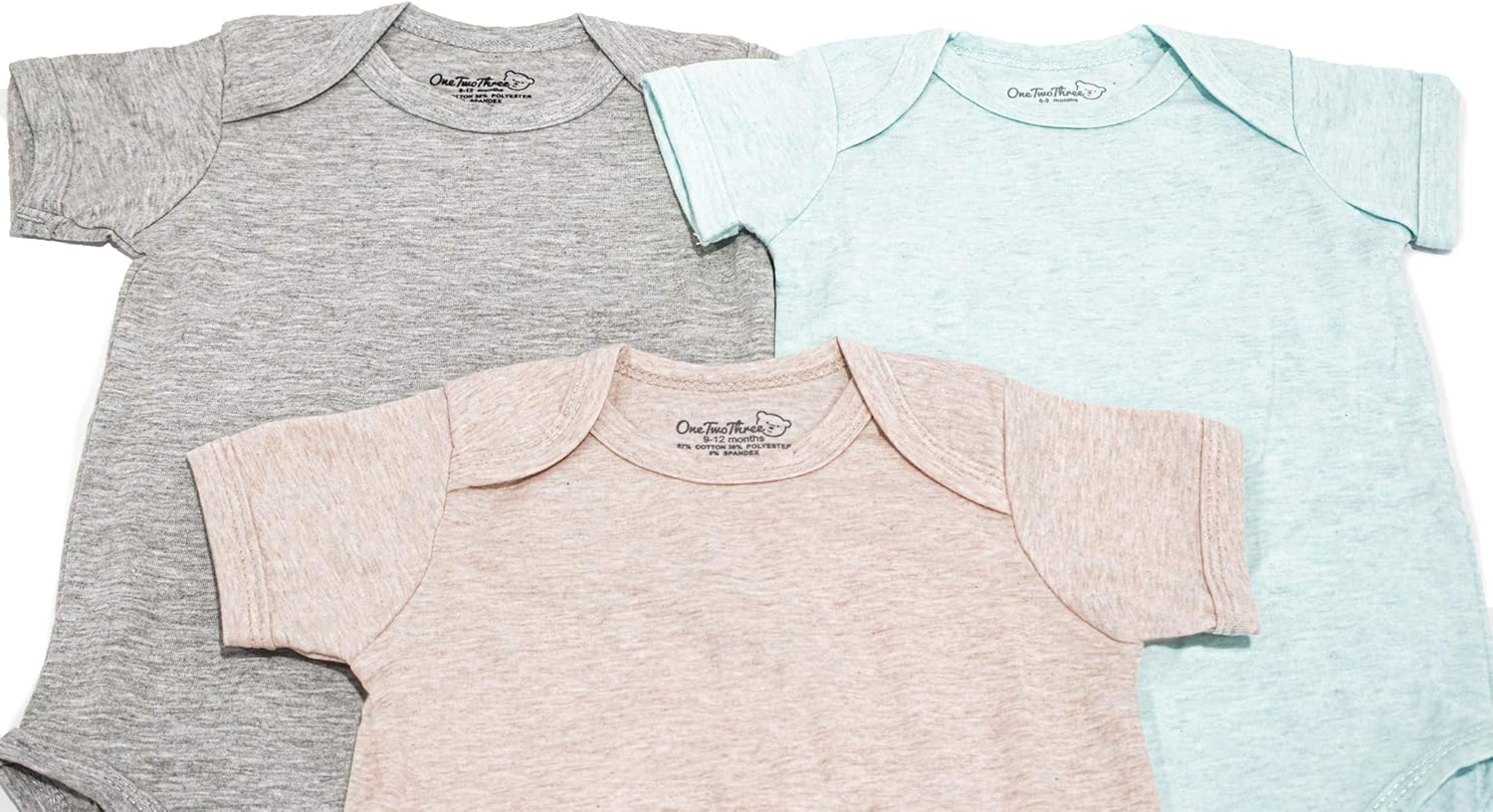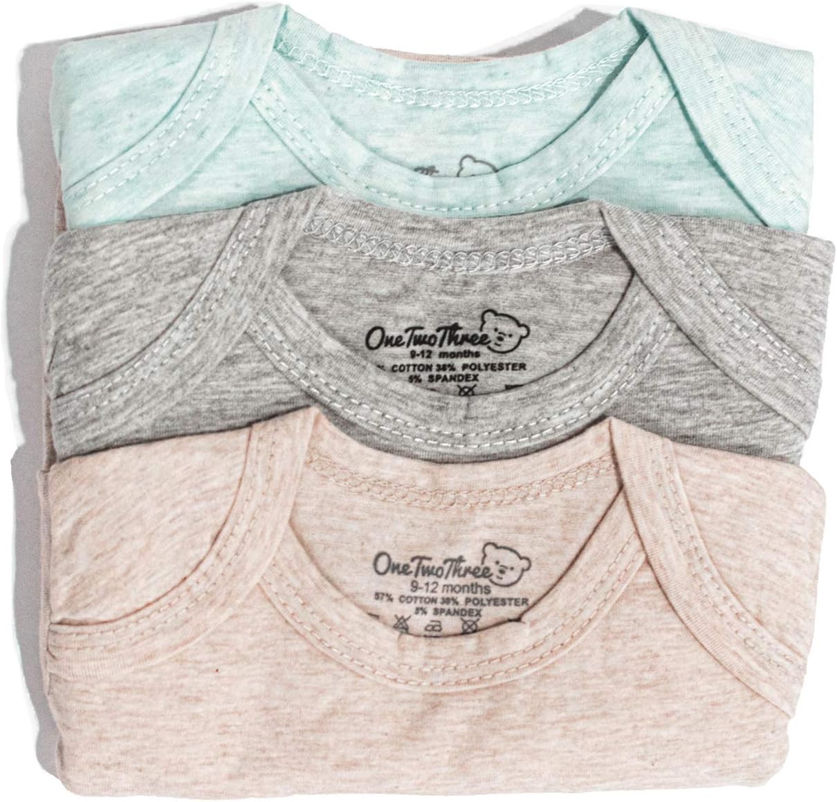 • Includes 3 cotton spandex short sleeve bodysuits