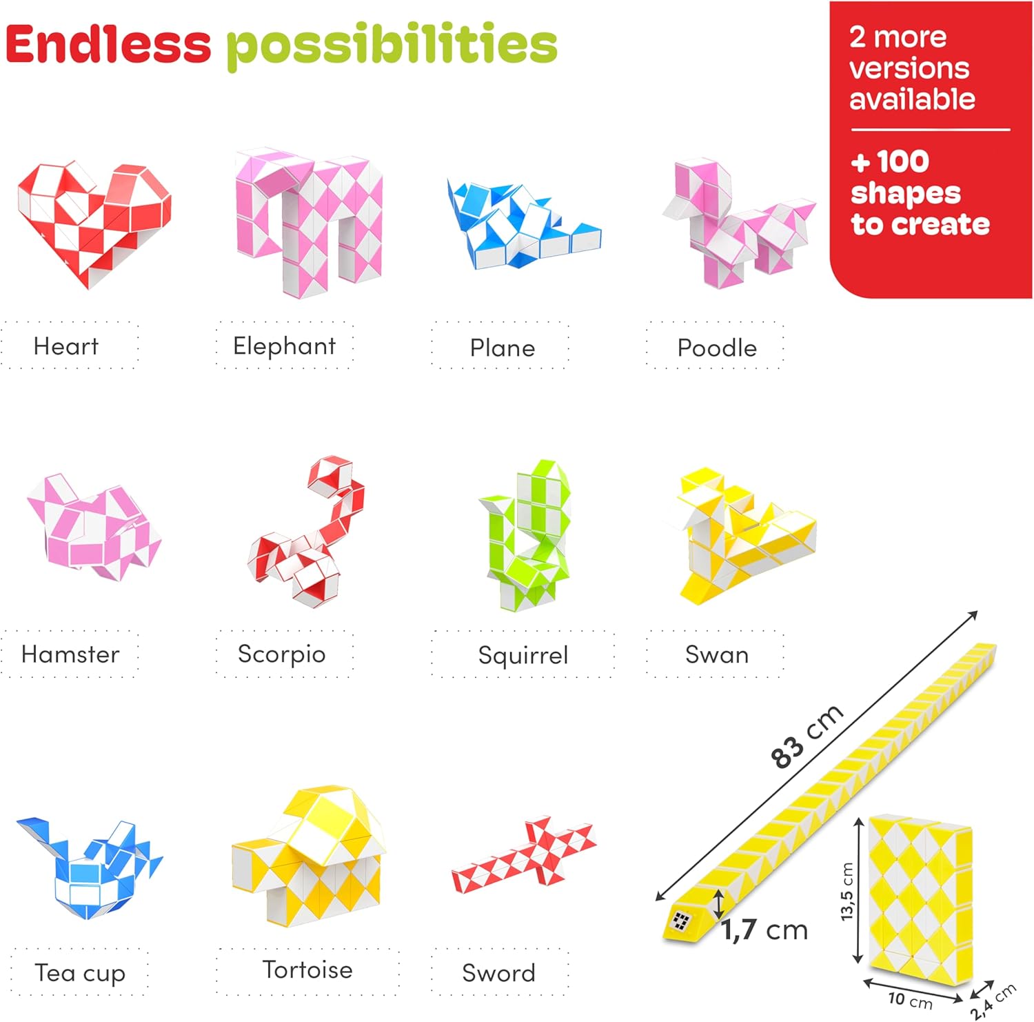 - 1 TOY WITH 100 SHAPES: Create with this snake fidget toy over 100 different figures like a dog, cat or elephant. This fidget snake cube fascinates kids and they love to play with it. Magic snake toy is for kids ages 4-8