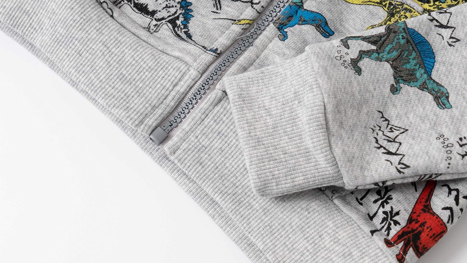• Design: This full-zip long-sleeved hooded sweatshirt features classic and concise cuts with cute and fun colorful dinosaur prints. Ribbed cuffs and hem stretch for cozy fit, Windproof and warm.