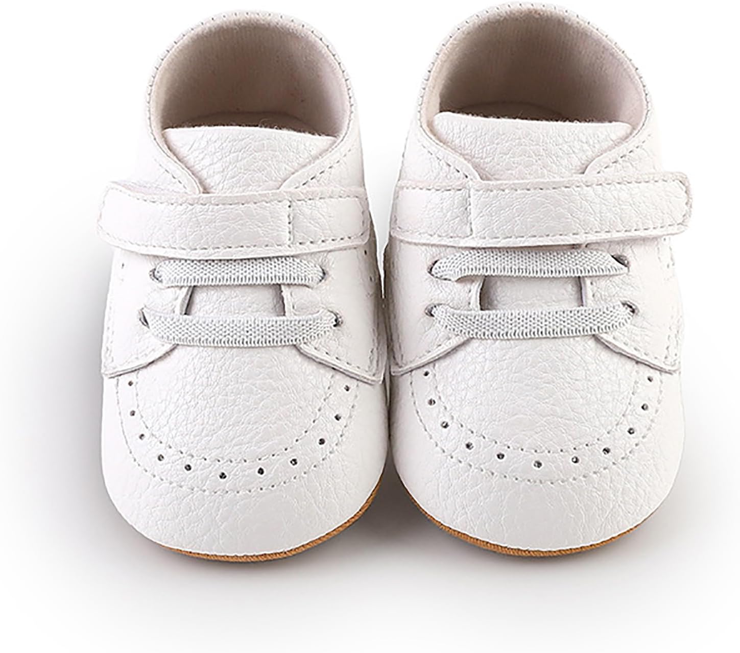 SOFMUO Baby Boys Girls High Top Ankle PU Leather Sneakers Soft Rubber Sole Infant Moccasins Newborn Oxford Loafers Anti-Slip Toddler Wedding Uniform Dress Shoes