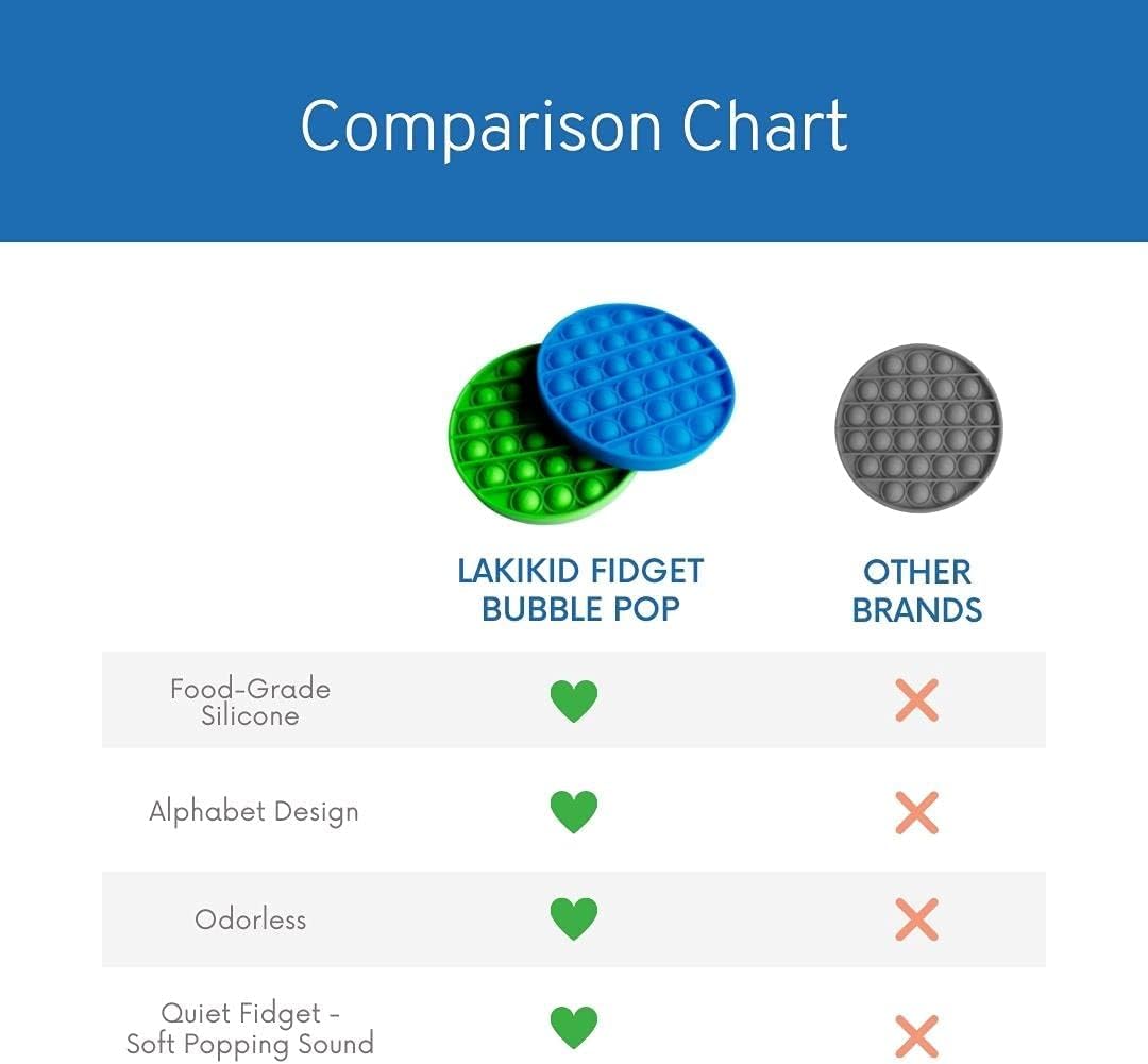 LakiKid Fidget Toys Fidget Pack - Educational Alphabet Fidget Poppers for Focus & Stress Relief – Durable, Quiet Silicone Push Pop Bubble Toys - Use It as Sensory Learning Toy for Kids & Adults