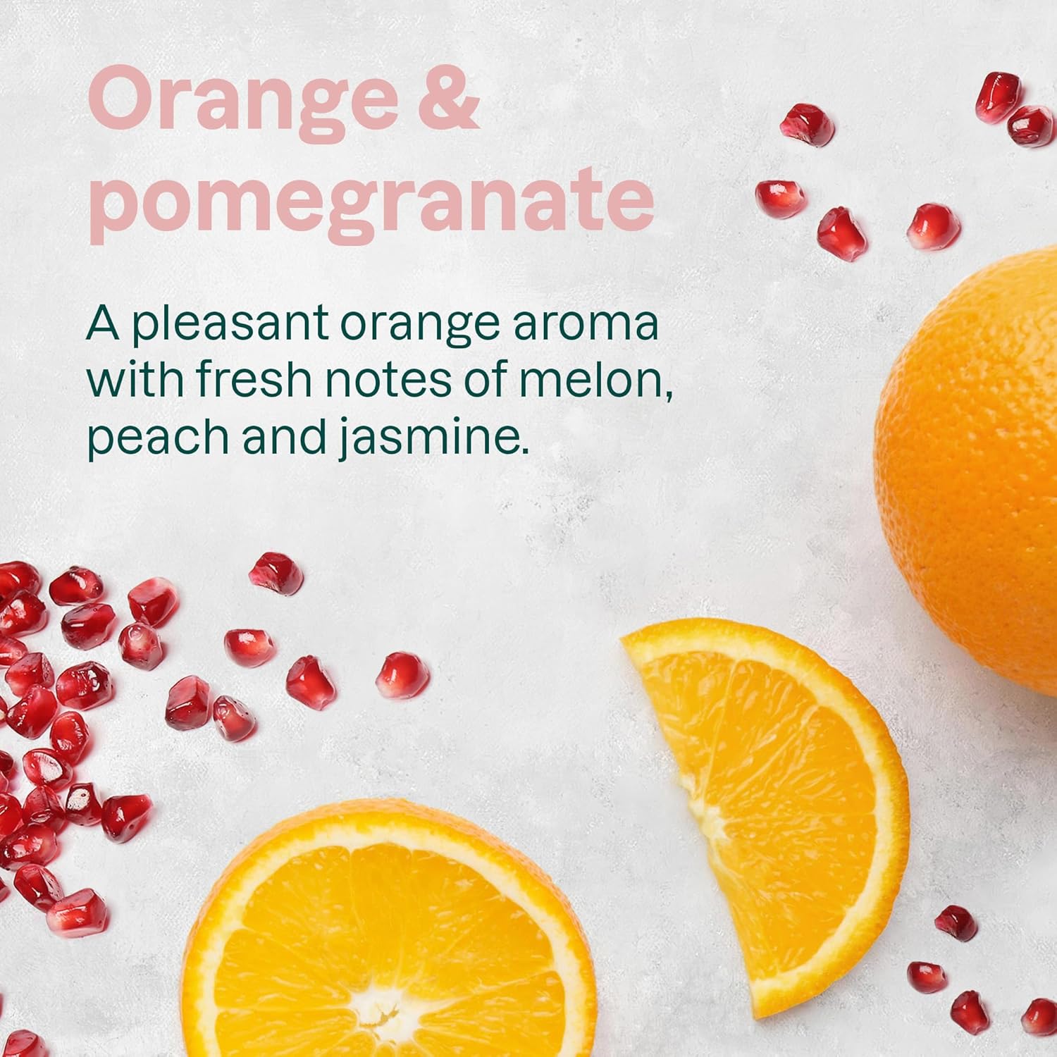 - ORANGE & POMEGRANATE FRAGRANCE: A vibrant, fruity blend that combines the zesty freshness of orange with the juicy, tart notes of pomegranate, for a scent that’s energizing, uplifting, and perfectly balanced.