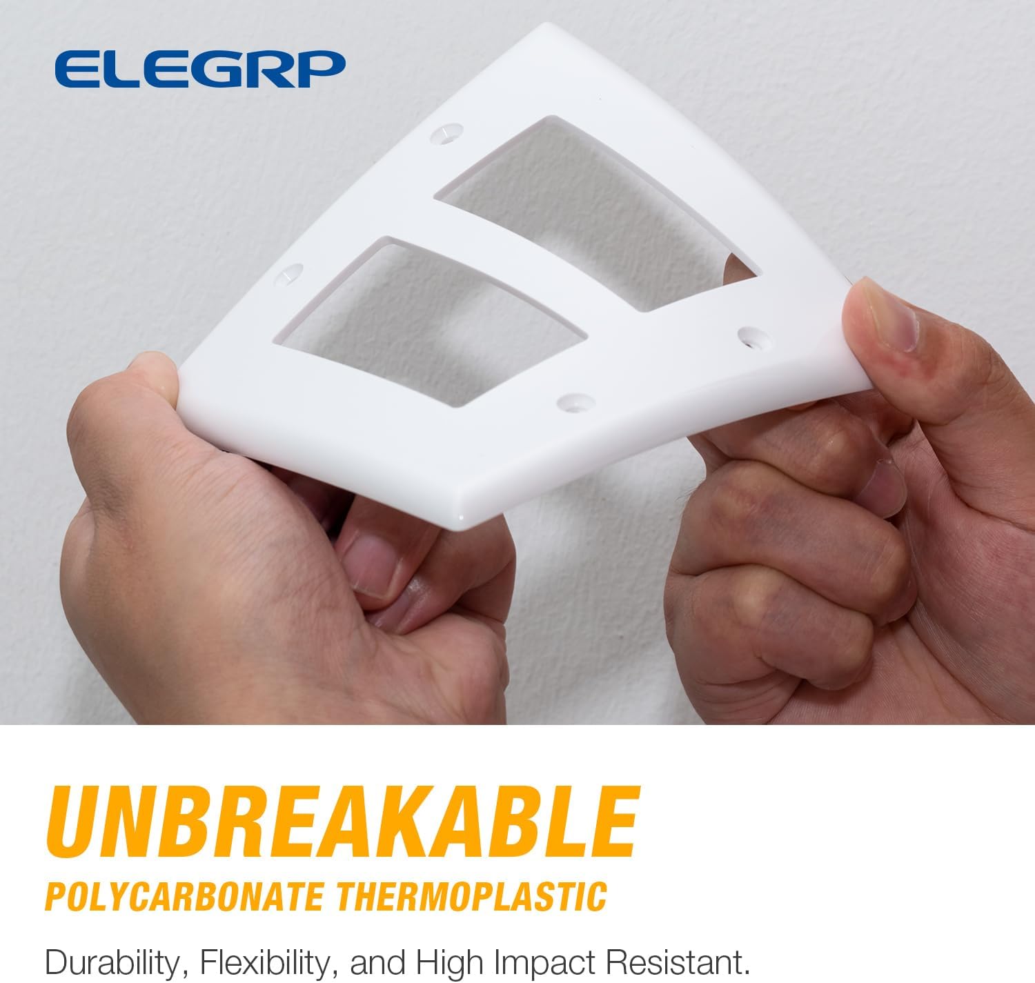 ELEGRP 2-Gang Decorative Wall Plates, Mid-Size 4.88" H x 4.94" L Unbreakable Thermoplastic Faceplate Cover for Decorator Receptacle Outlet Switch, UL Listed (2 Pack, Glossy White)