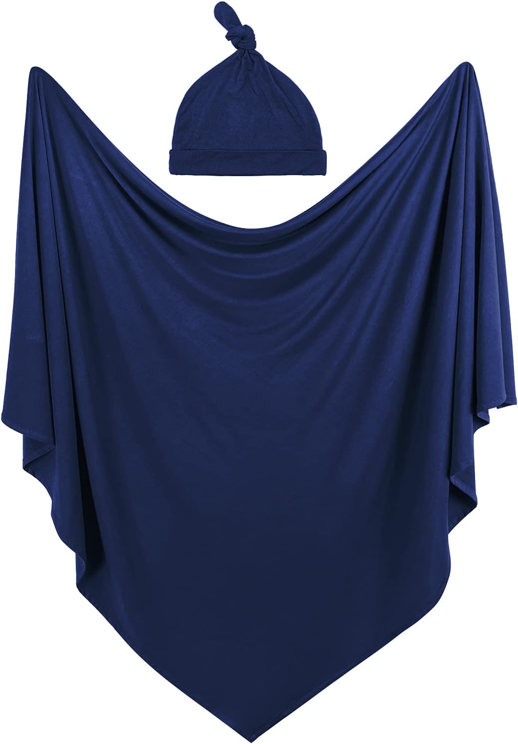 OWLOWLA Swaddle Blanket and Hat Set Newborn Swaddle Wrap Baby Receiving Blanket for Baby Boys Girls(Navy)