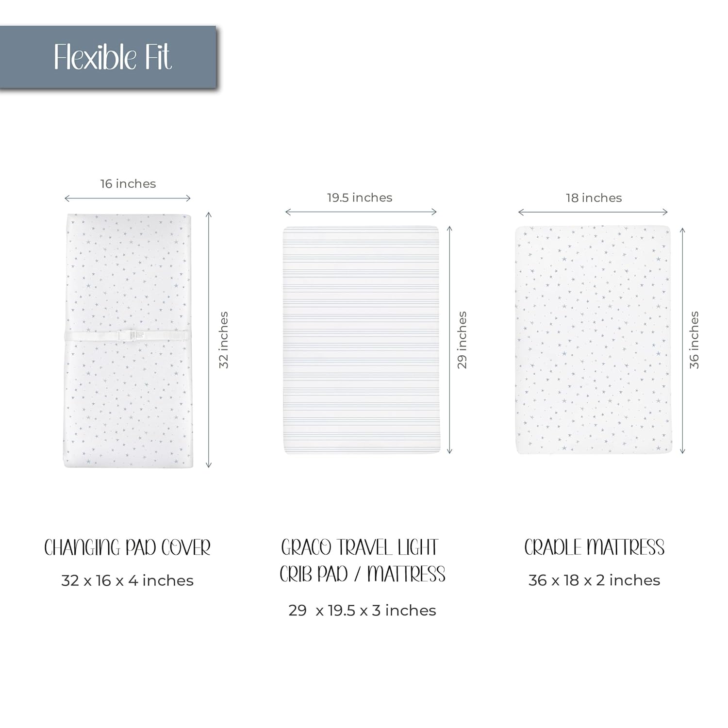 - Flexible Fit: Featuring an adaptable elastic band, these sheets offer a super stretchy, flexible fit while supplying a safe and secure, snug fit to multiple sizes of changing pads, cradle mattress.