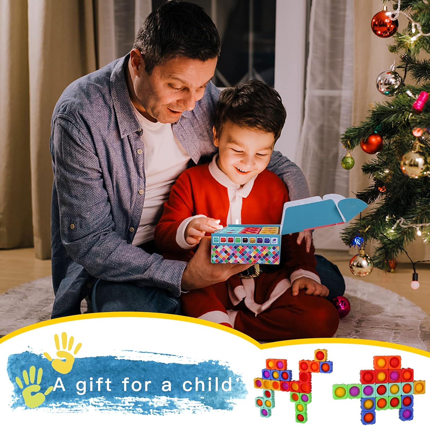 Pop Fidget Toys Bubble Sensory Toy Girl Boy 24Pcs Colorful Silicone Fidget Building Block Toy Set Autism Special Needs Stress Relief Kids Educational Dimple Fidget Packs Puzzle Toy Toddler Gift