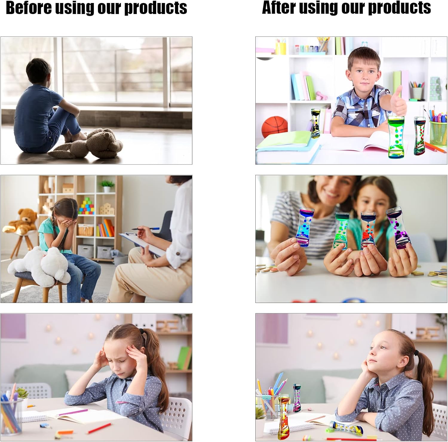 - Perfect Liquid Bubbler Timer Toys- A gentle fidget toy that pleases the eye and eases for comfort. It relaxes with its colorful droplets flowing to the bottom. Great gift for teenagers & adults