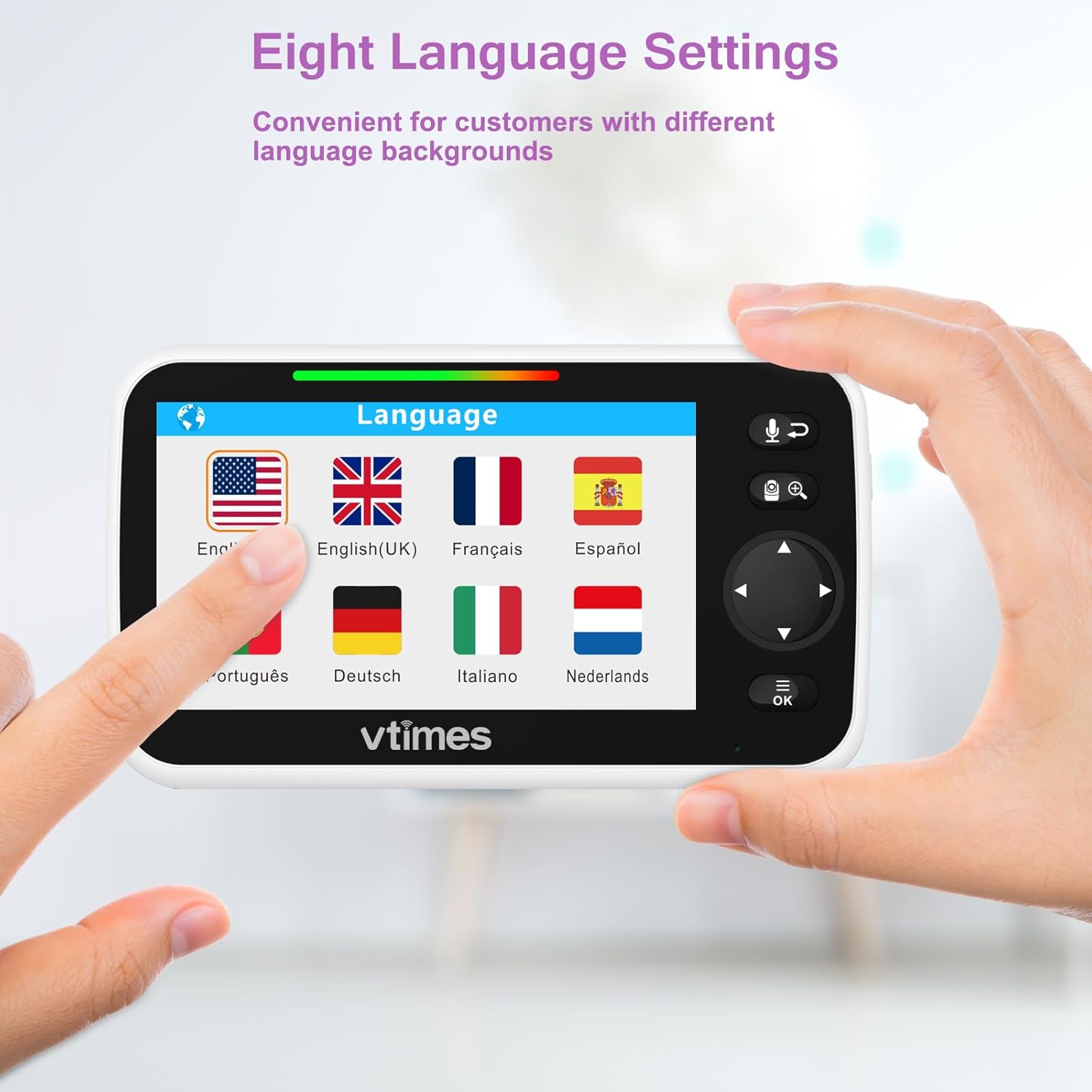 - 【Smart Features】- Plug and Play Monitor, Adjustable Camera Angle, Wall-Mountable, Room Temperature Monitor and Alert, 8 Lullabies, Night Vision, Sound Activated LED Indicators, Alarm/Timer Setting, 2x Digital Zoom, expandable up to 4 cameras.