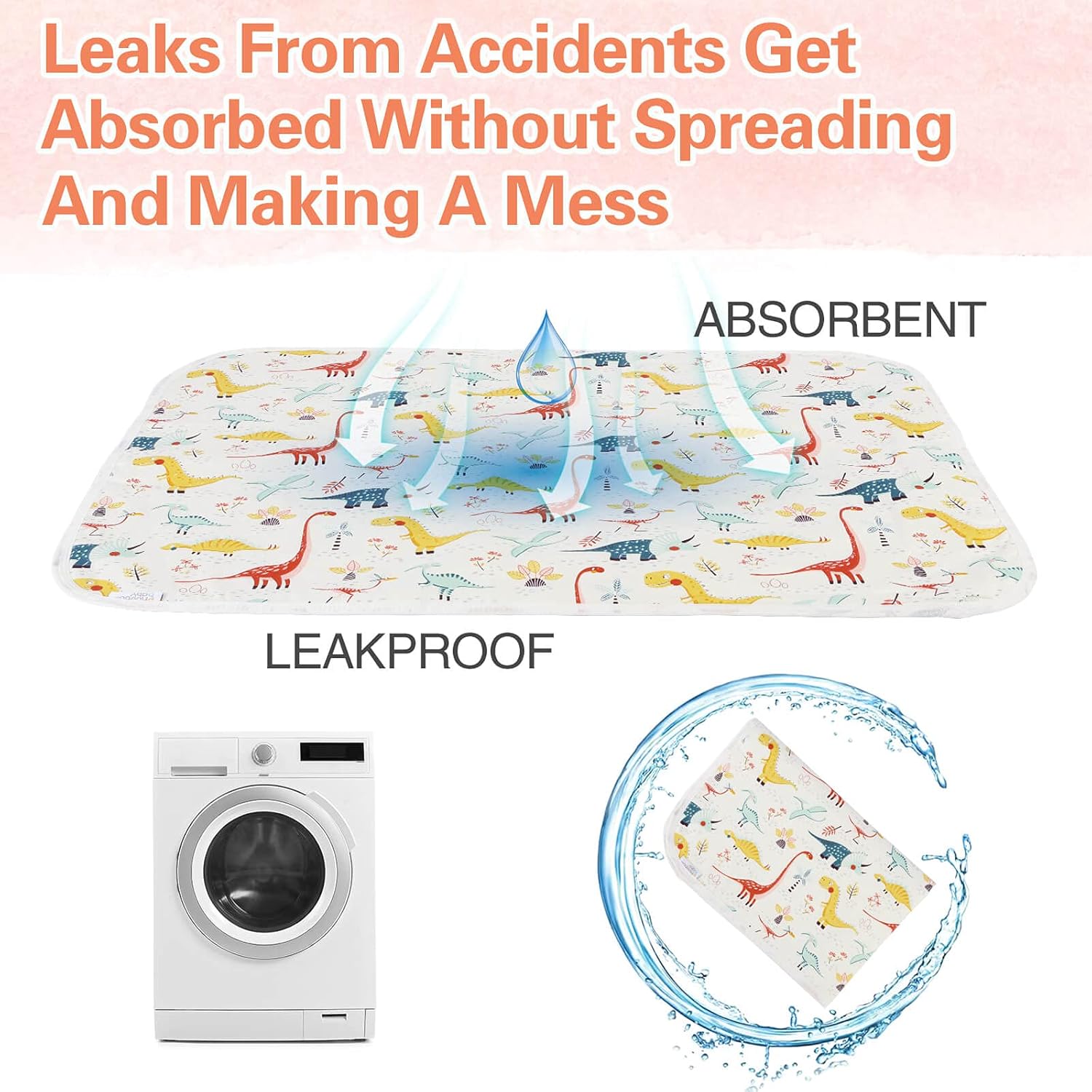 Baby Diaper Changing Pad, 21 5/8" x 31.5" Waterproof Changing Pad Liners - Reusable Soft and Absorbent Portable Changing Mat(Colorful Dinosaur1PCS)