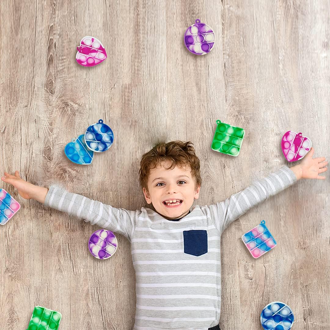 - Fidget Toy Pack: Mini pop its for adults and kids to use as stress relief toys. 3 shapes, 6pcs of colorful tiny pop it.