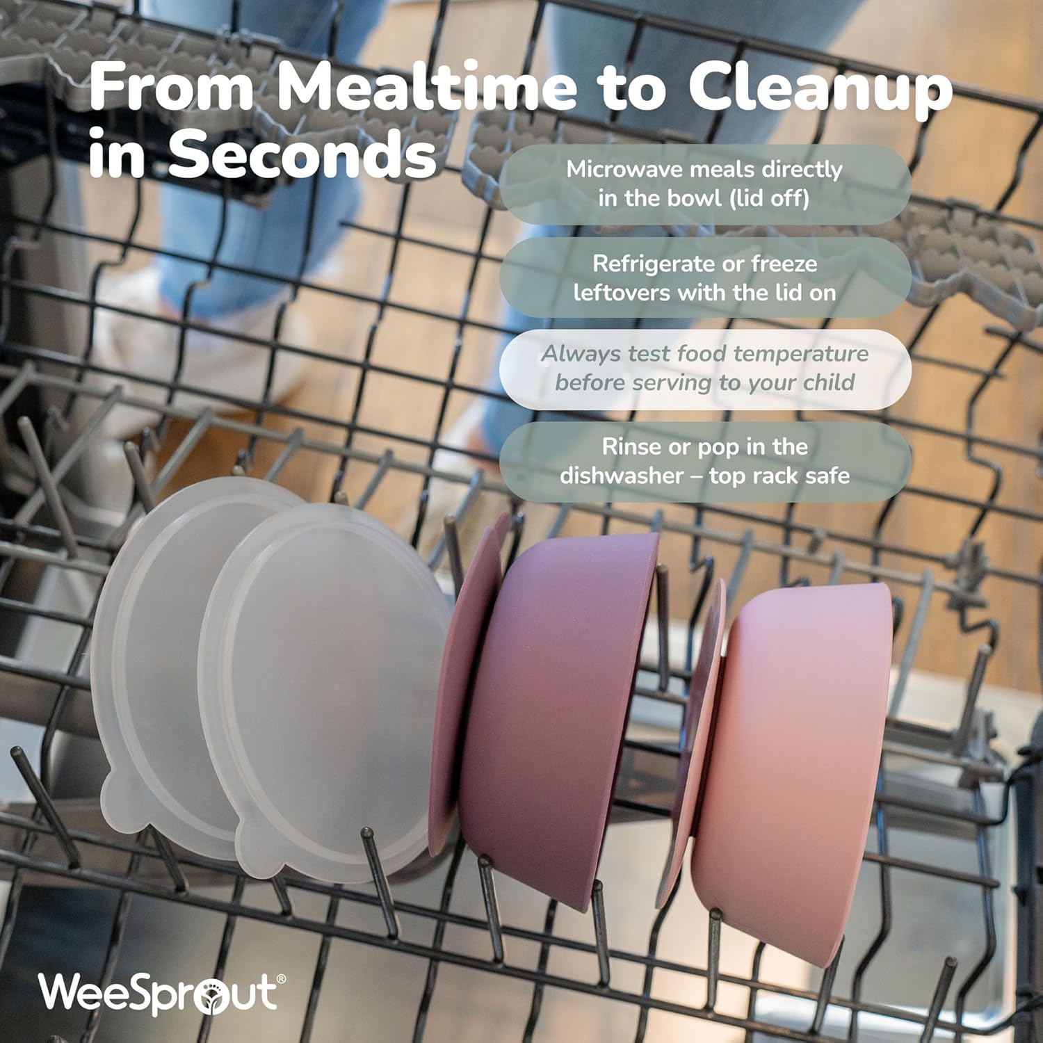 WeeSprout Suction Bowls for Baby & Toddlers (Set of 2) - 100% Silicone w/Plastic Lid - Leak Proof Feeding Supplies - Dishwasher & Microwave Safe Infant Dinnerware w/Extra Strong Base