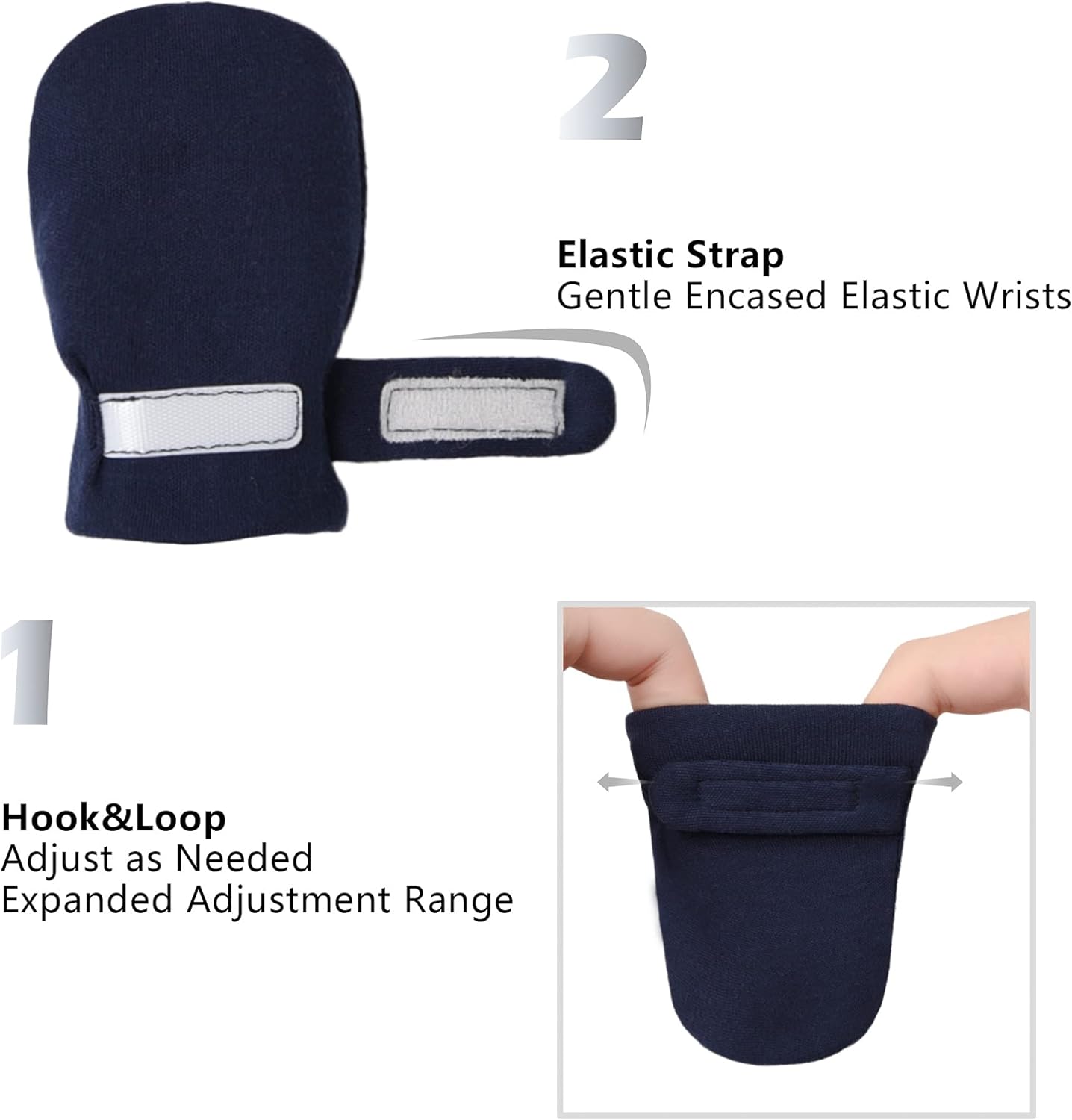 Newborn Baby No Scratch Mittens Stay On, 100% Cotton Breathable, Adjustable Infant Gloves for Baby Boys Girls Mittens