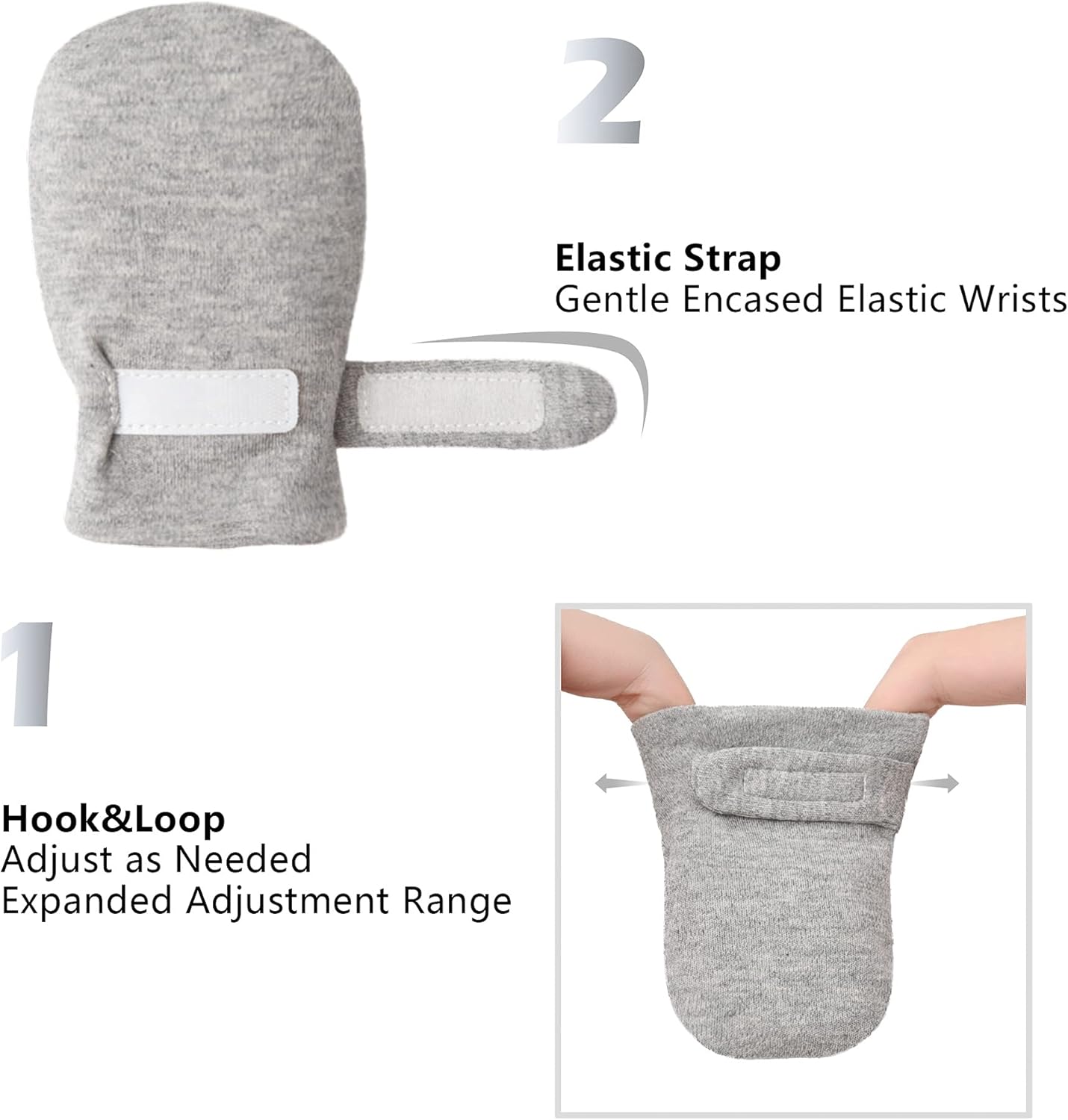 Newborn Baby No Scratch Mittens Stay On, 100% Cotton Breathable, Adjustable Infant Gloves for Baby Boys Girls Mittens
