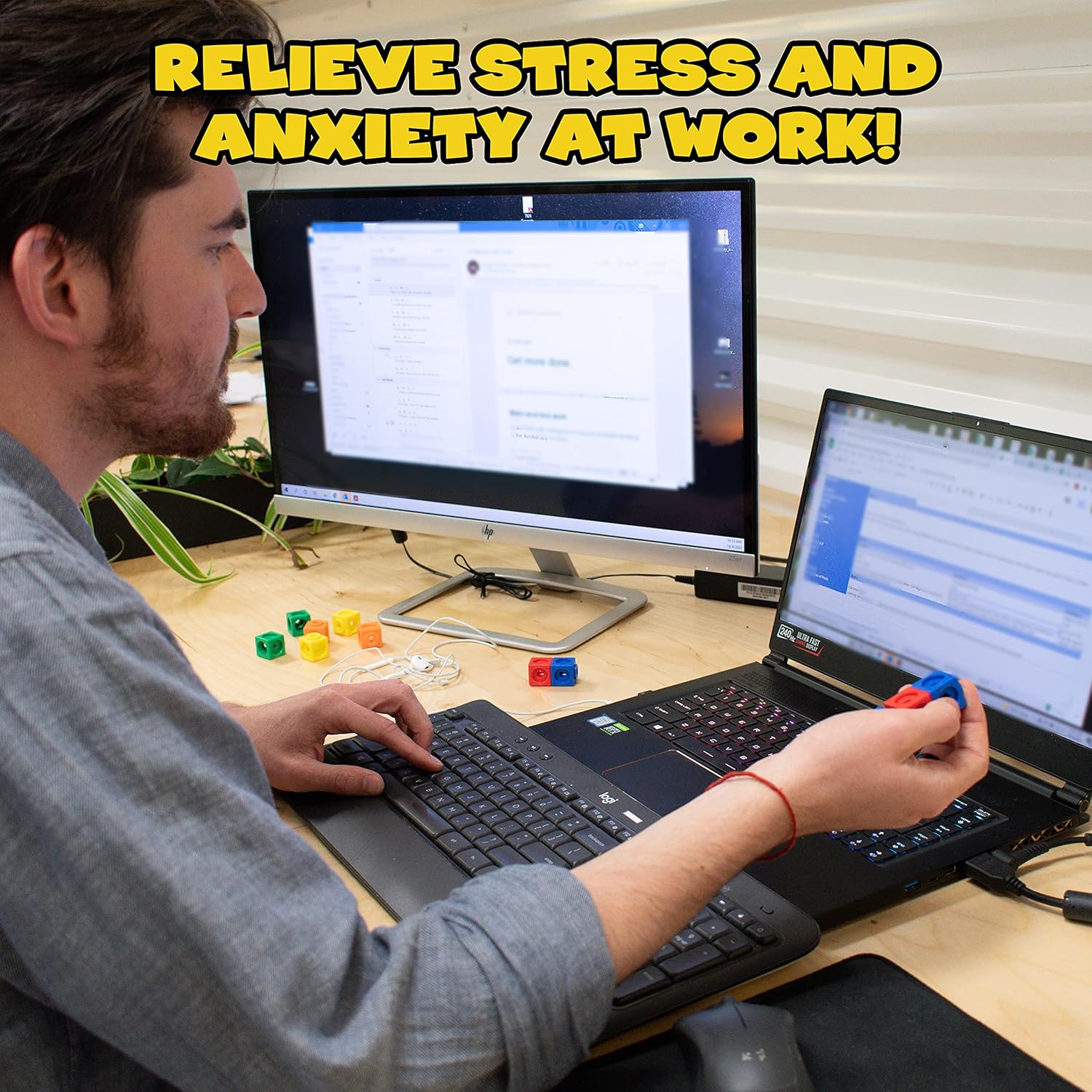 - STRESS AND ANXIETY RELIEF TOY -- Relieve your stress and anxiety at work or school. Connect, build, snap, and twist these fidget cubes. Also great for calming ADHD and Autism.
