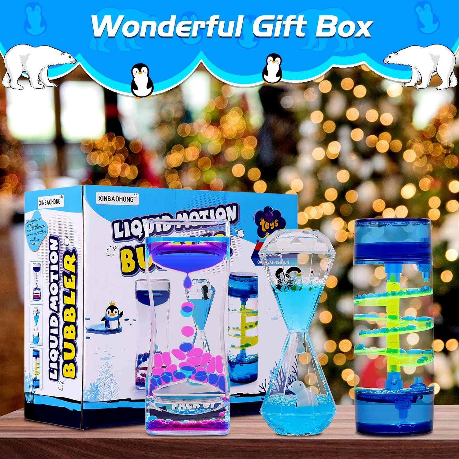 XINBAOHONG Liquid Motion Bubbler for Kids and Adults 3-Pack Hourglass Liquid Bubbler Timer for Sensory Play Fidget Toy Stress Management Desk Decor