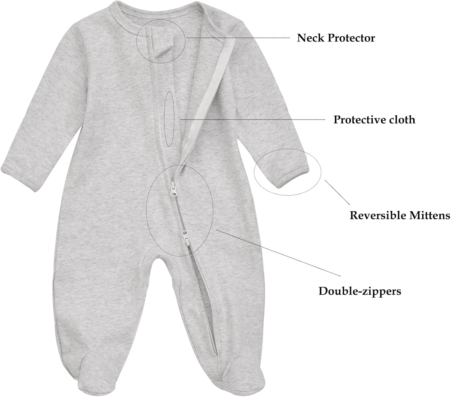 Aablexema Baby Footie Pajama with Mitten Cuffs, Double Zipper Infant Cotton clothes Sleeper Pjs, Footed Sleep Play