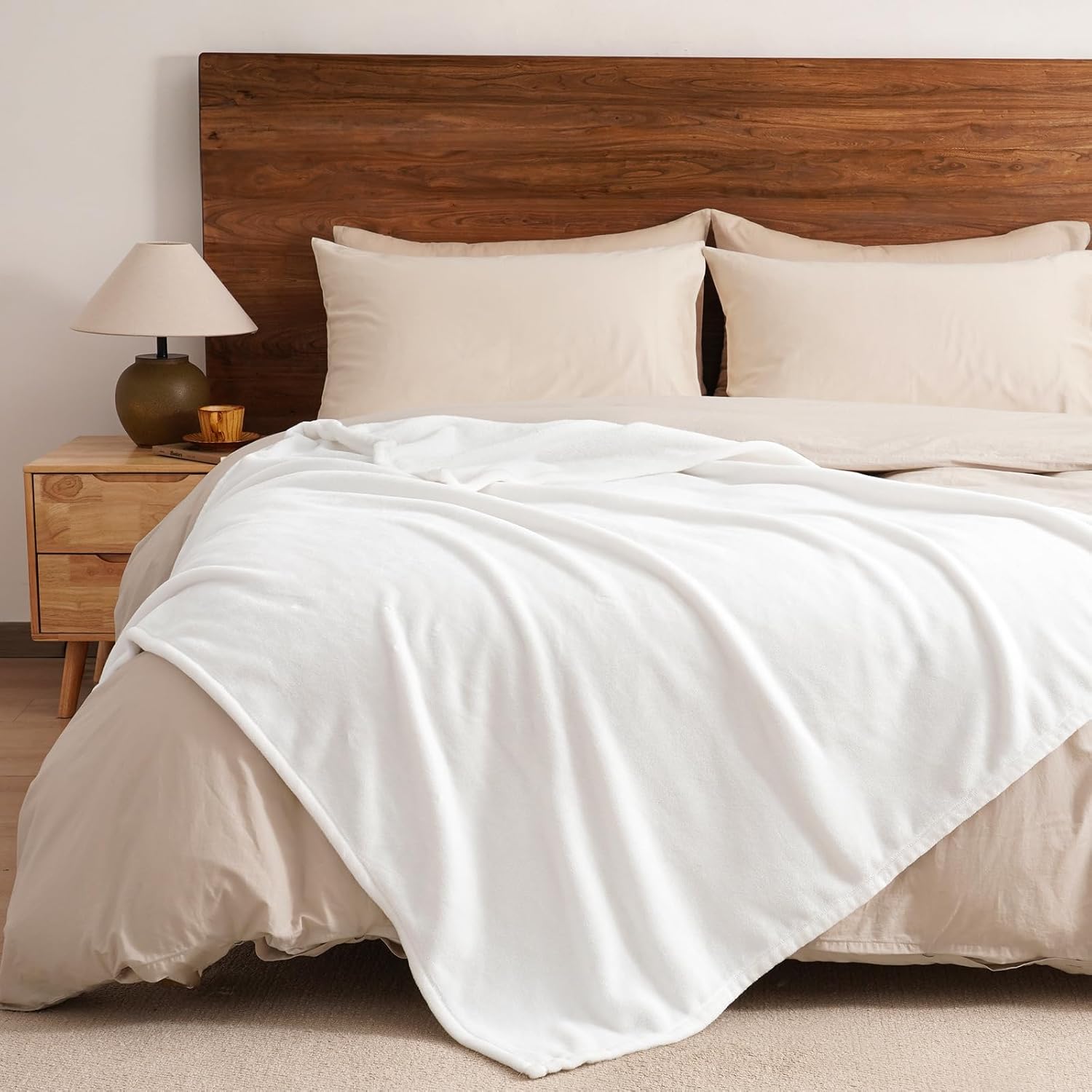 PHF Ultra Soft Fleece Throw Blanket, No Shed No Pilling Luxury Plush Cozy 300GSM Lightweight Blanket for Bed, Couch, Chair, Sofa Suitable for All Season, 50" x 60", White