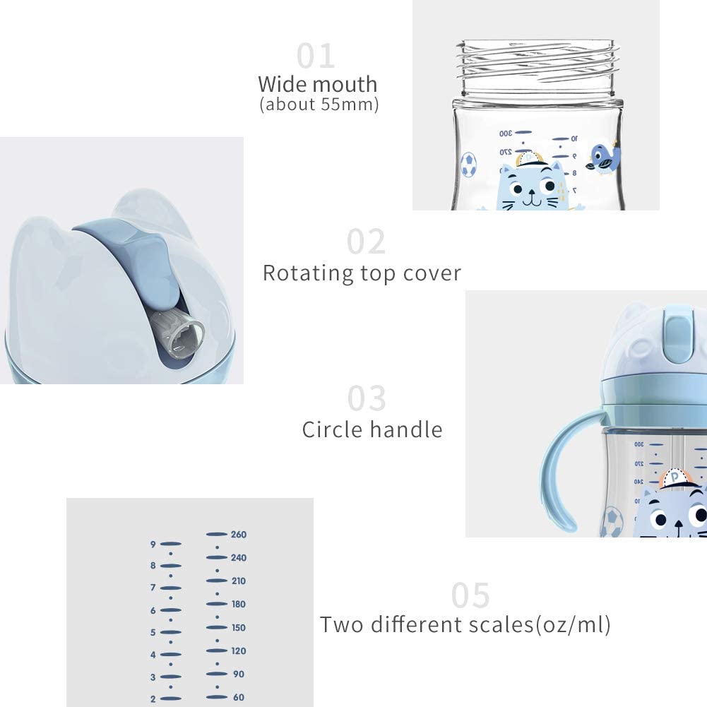 - ROTATING HANDLE: Handle is designed to rotate to protect the child's wrist and can help baby control drinking. 360 Degree Drinkable Straw Group-Weighted straw moving with liquid allows your baby drink from any angle.