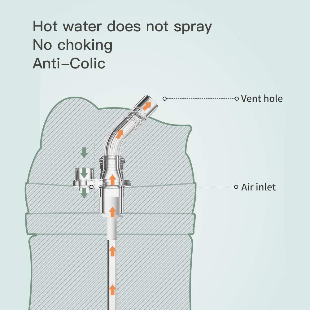 - LEAK-PROOF: V-type bite tube, features a leak-proof cover, baby can drink easily without choking. Recommended the maximum temperature is below 109℃. (Drinking temperature is suitable for 37.5℃; Milk temperature is suitable for 40-50℃).