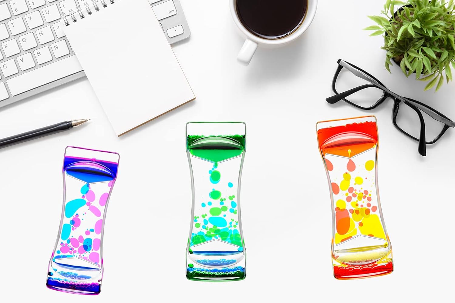 - 2.Liquid Bubbler Timer Toys: Great desk sensory play top toy for all ages ranging from children to adults. A great Home Ornament and office relax decor. The soothing rainbow colors remind you to slow down, relax and enjoy every moment.