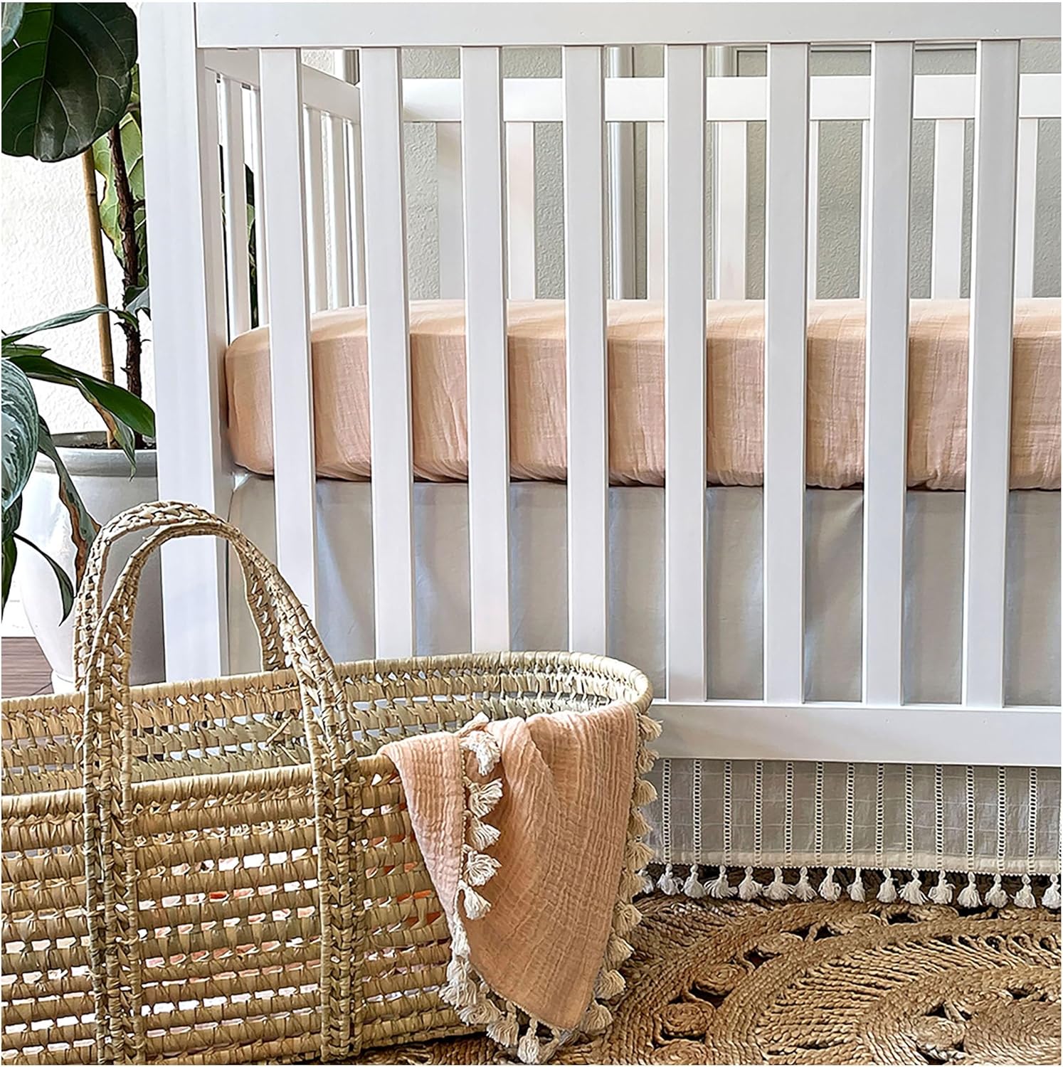 Crane Baby Cotton Sateen Fitted Sheet, 28x52'', Desert Rose, Pink Crib Sheets for Girls, Soft Cotton Crib Sheets for Girls, Nursery Decor for Girl Nursery, Elastic Pockets