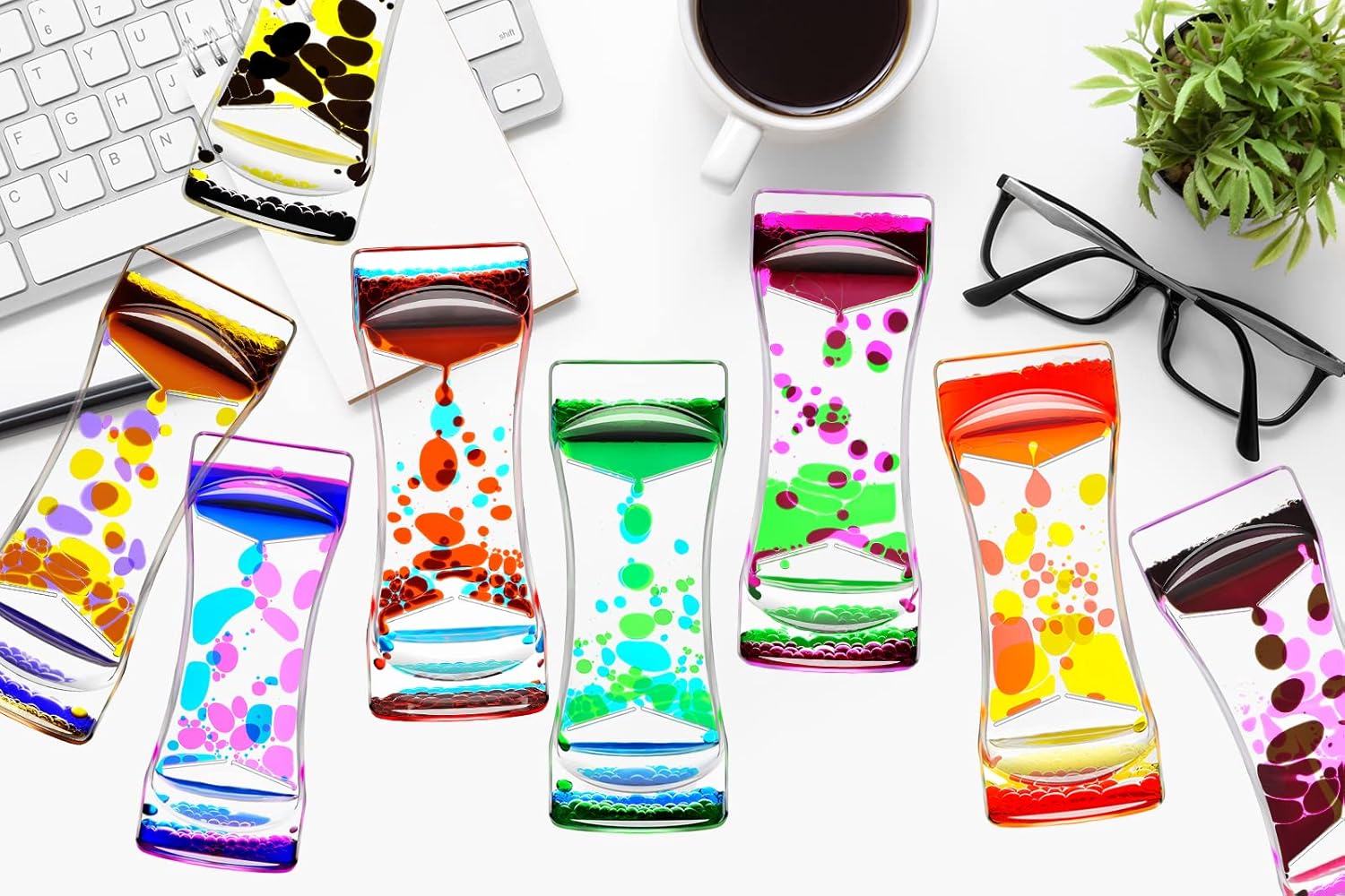 - 4.Great Gift Ideas for Every One: We are giving the best holiday gift this season that you can’t resist. This liquid timer is the perfect fidget autism toy, desk corner toy, and even play as a classroom reward.- DRIP OIL MOTION BUBBLE TIMER! Size:13.7 x 5.5 x 3cm/ 5.39 x 2.16 x 1.18 inch (LxWxH)