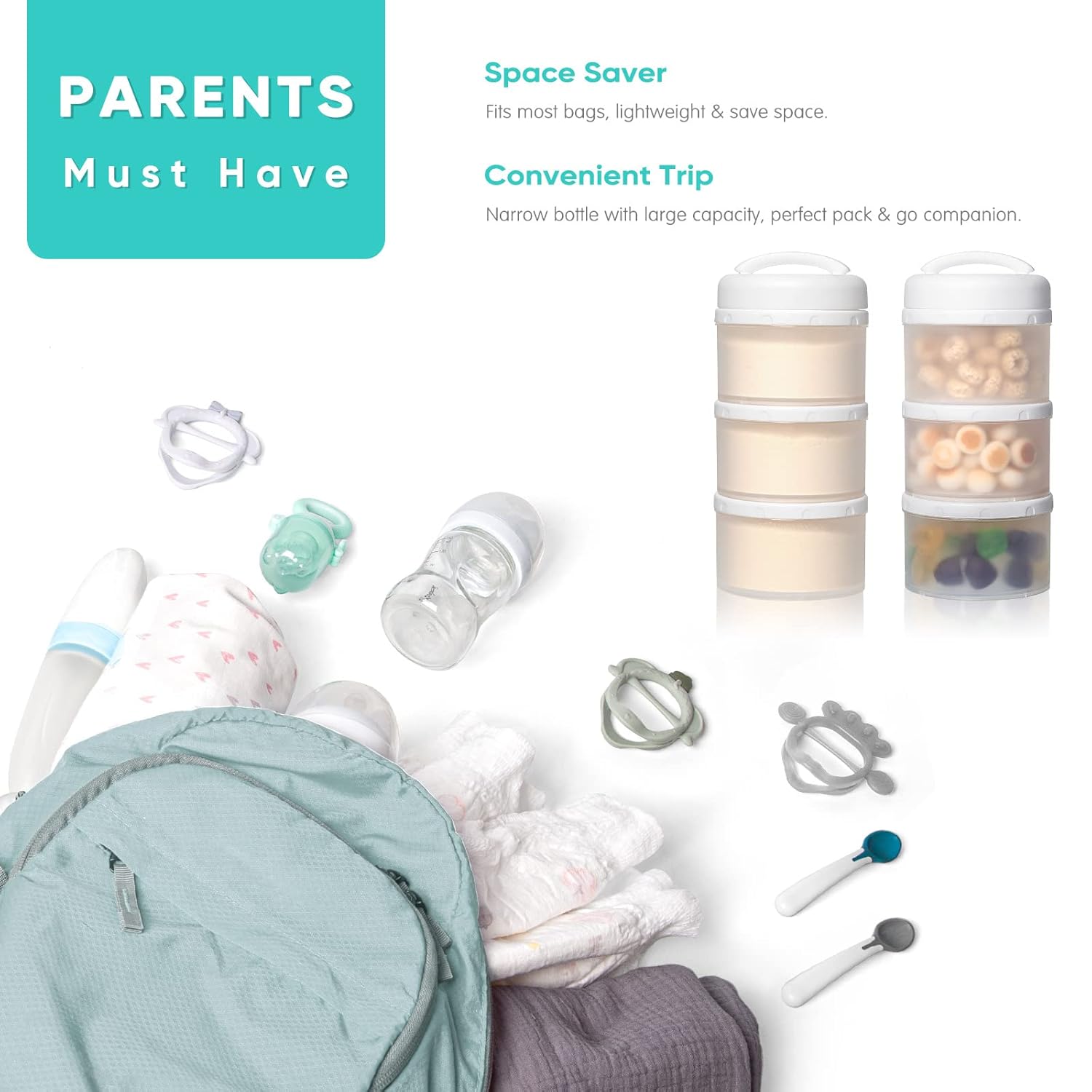 - Safe and Portable: The formula container is made of food-grade pp plastic, BPA free. Each container can hold 60g/ 2.1 oz milk powder. Easy baby feeding and parents stress free.