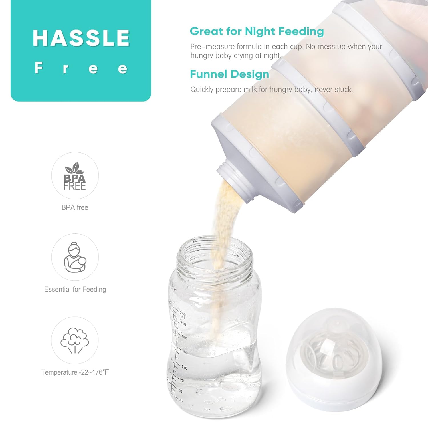 - Safe and Portable: The formula container is made of food-grade pp plastic, BPA free. Each container can hold 60g/ 2.1 oz milk powder. Easy baby feeding and parents stress free.