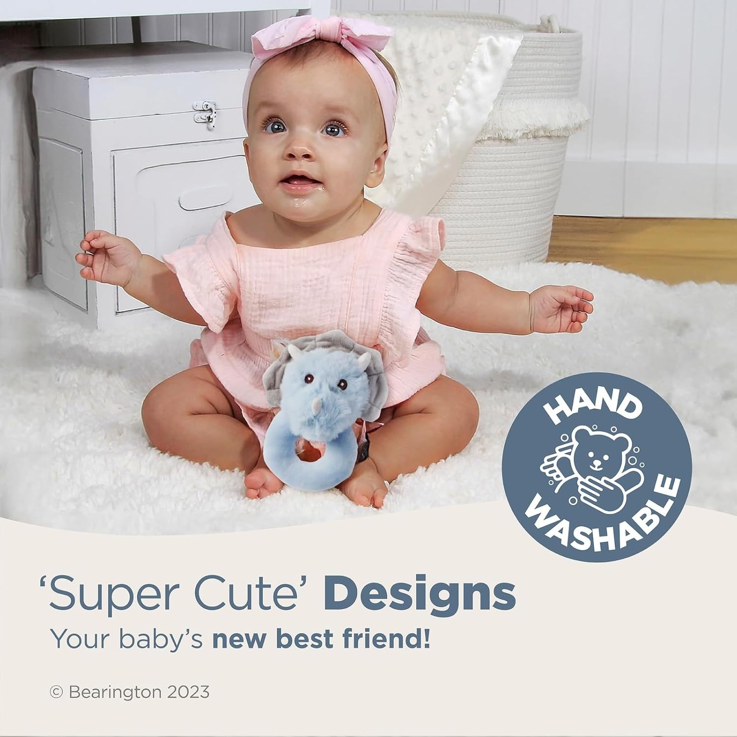 - Cuddly Dino Vibes: The Bearington Lil' Tracer plush dinosaur rattle is the perfect soft buddy for your little one to shake and cuddle. This adorable dinosaur rattle toy is crafted for tiny hands, making it the ultimate companion for endless playtime fun