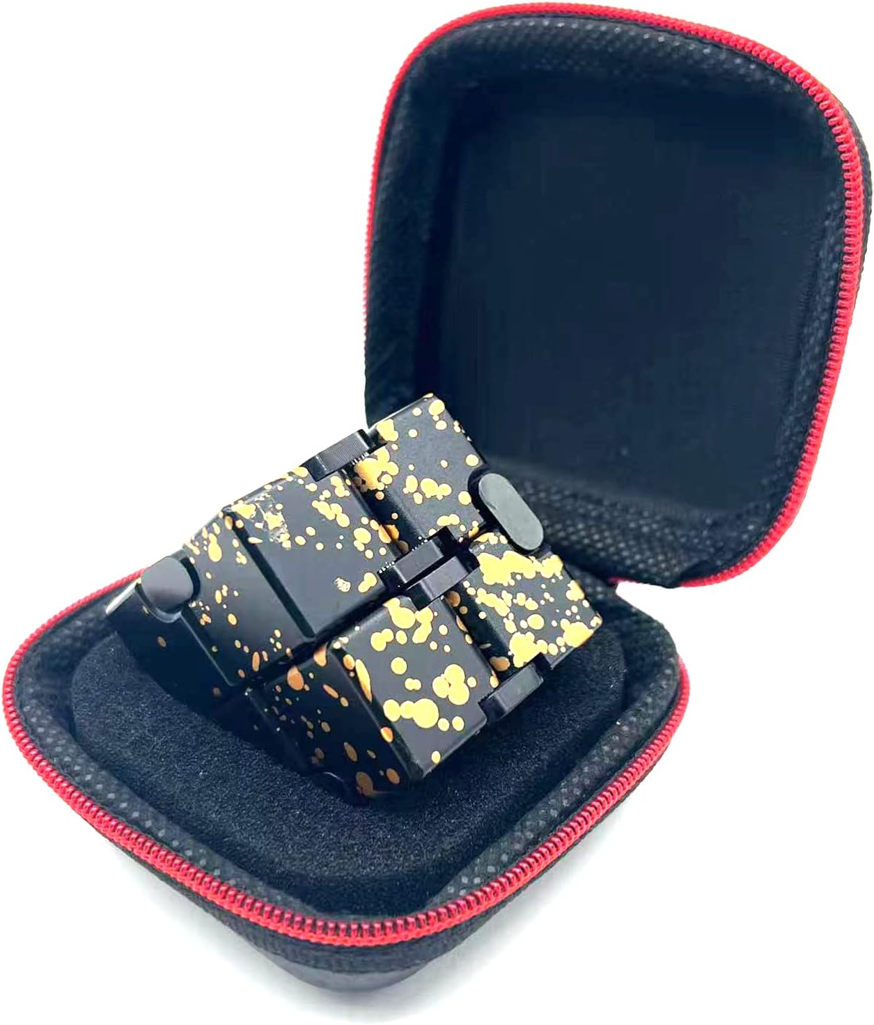 Metal Fidget Toys Infinity Cube for Men Anxiety Stress Relief Aluminum Alloy Material (Black & Yellow)